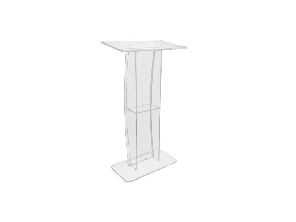 Akrylové pódium , výška 119 cm, čirý akrylový stojan na pódium se širokou čtecí plochou a úložnou policí, stojící na podlaze, čirý akrylový pult pro církevní kancelář a školu