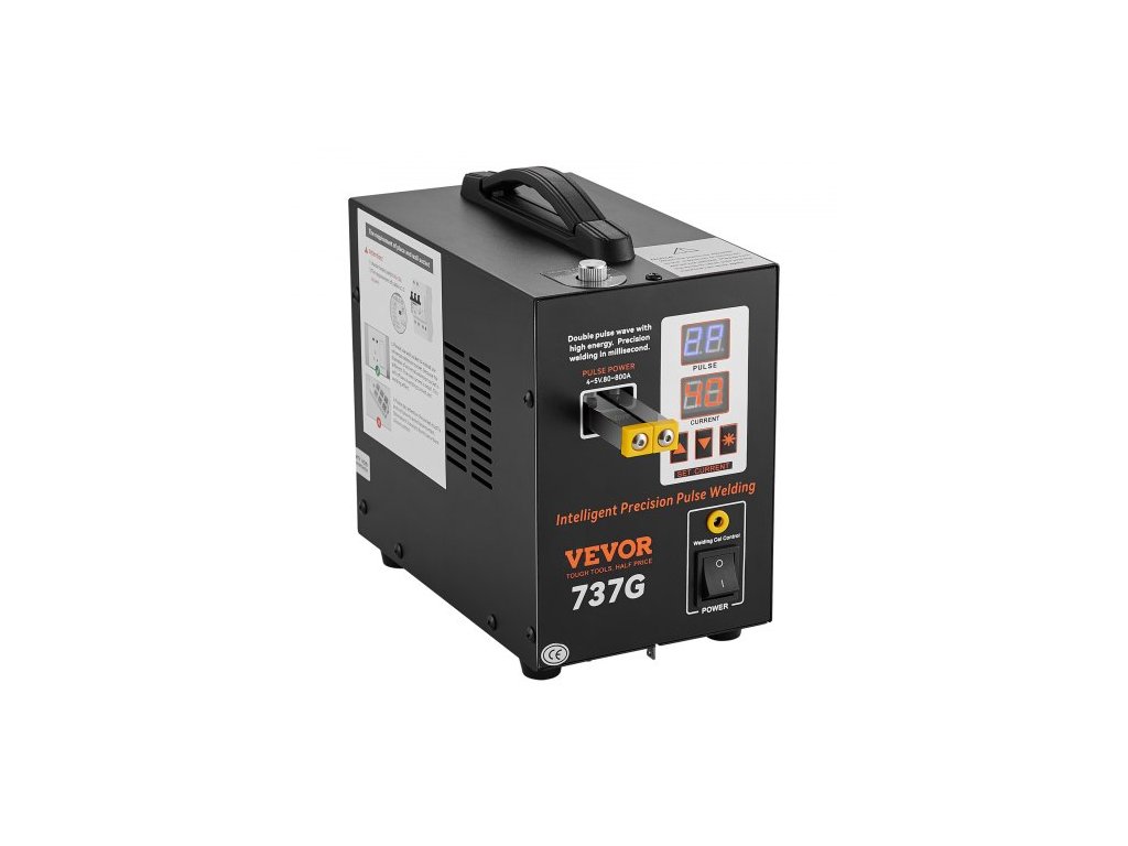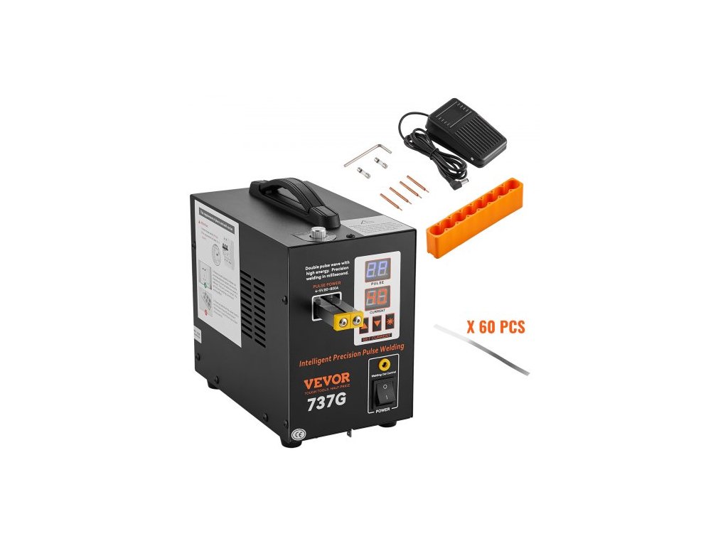 Tloušťka bodového svařování: 0,12 mm (pásek z čistého niklu), Číslo modelu položky: 737G, Tlak svařovací jehly: 200 g-700 g, Rozměry výrobku: 9,1'' x 5,5'' x 9,1'' / 230 x 140 x 230 mm, Čistá hmotnost: 9,7 lbs / 4,42 kg, Maximální výstupní výkon: 2,8 kW, Svařovací proud: 500-800 A