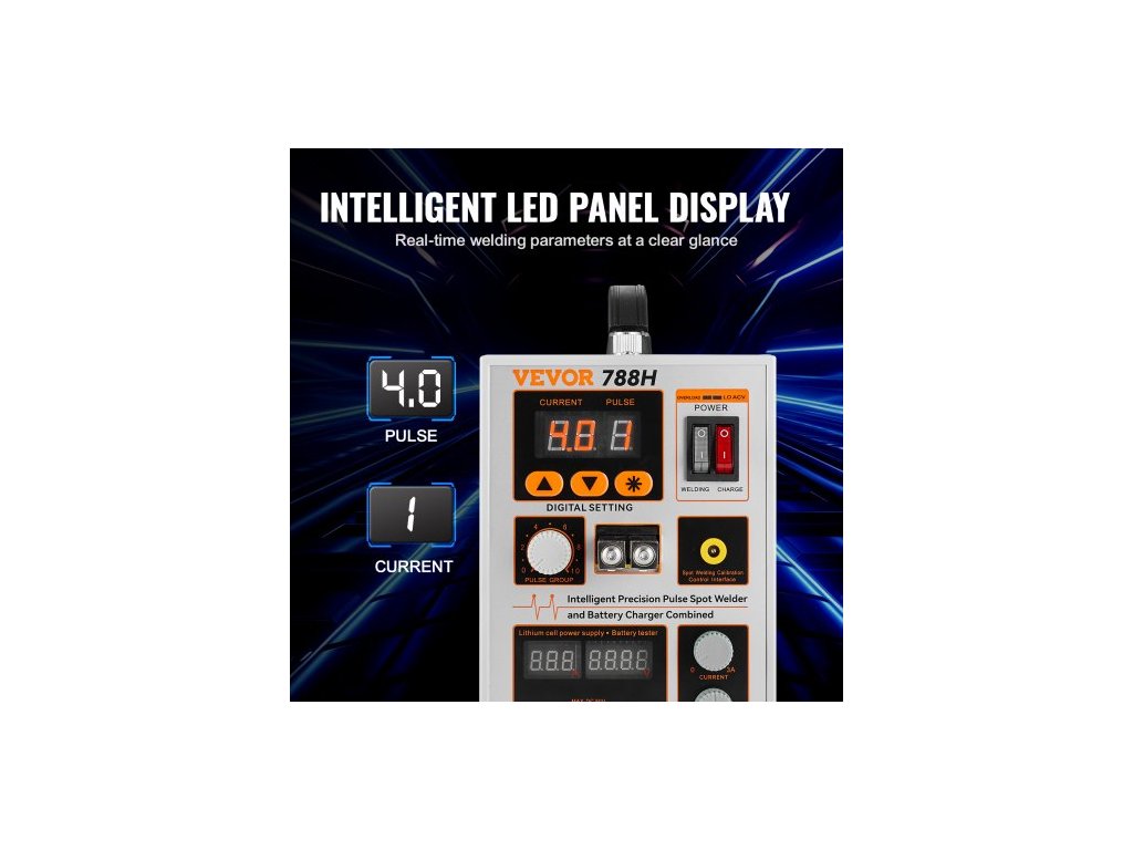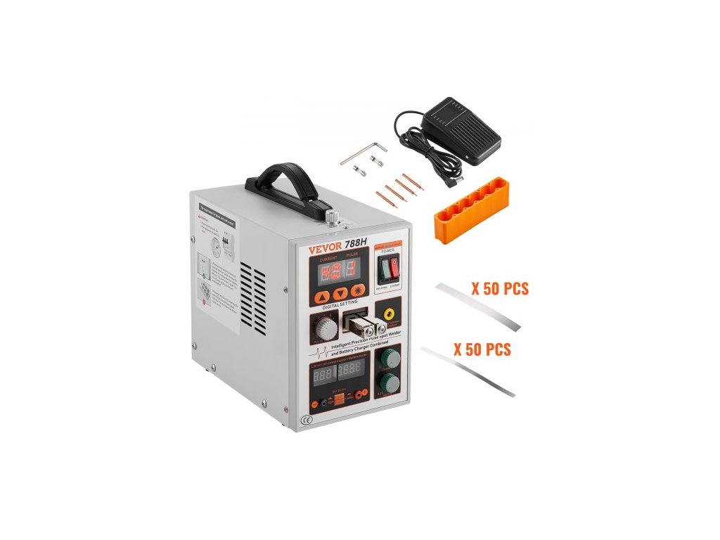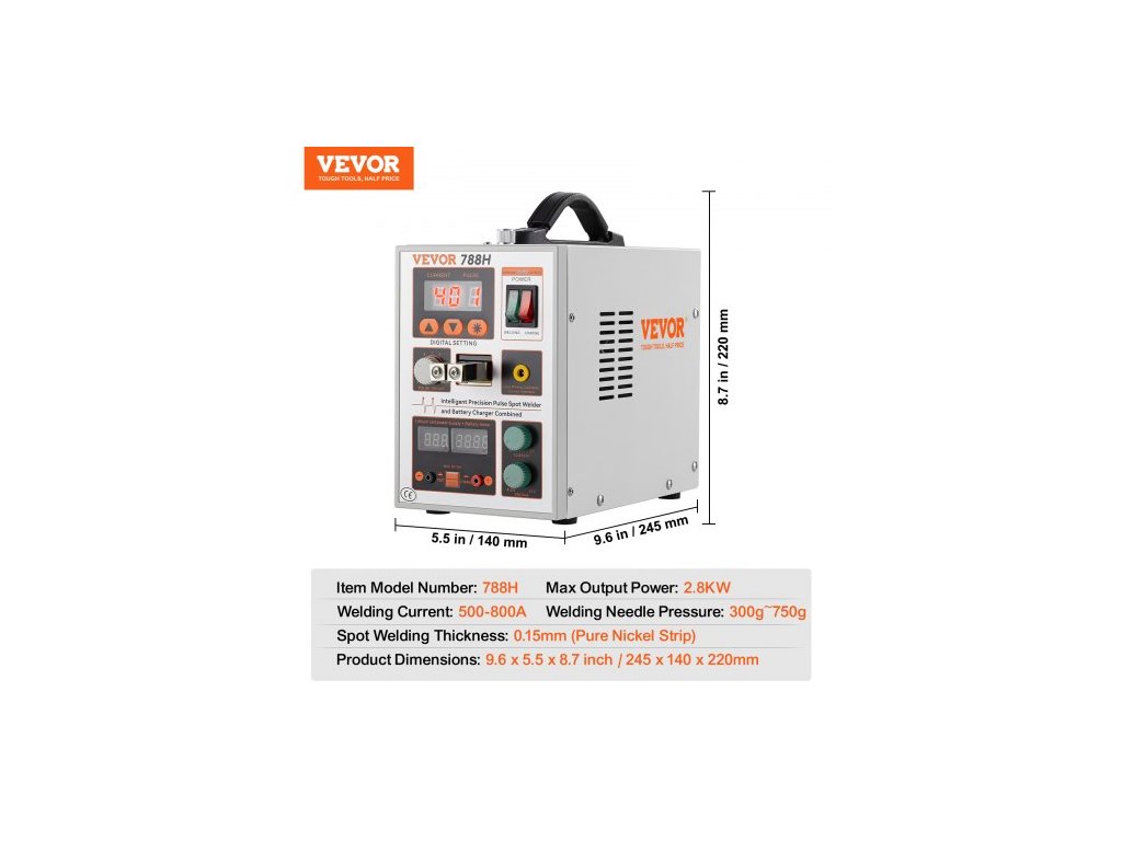 Tloušťka bodového svařování: 0,15 mm (pásek z čistého niklu),Číslo modelu položky: 788H,Tlak svařovací jehly: 300 g-750 g,Rozměry produktu: 9,6'' x 5,5'' x 8,7'' / 245 x 140 x 220 mm,Čistá hmotnost: 10,1 lbs / 4,6 kg, maximální výstupní výkon: 2,8 kW, svařovací proud: 500–800 A