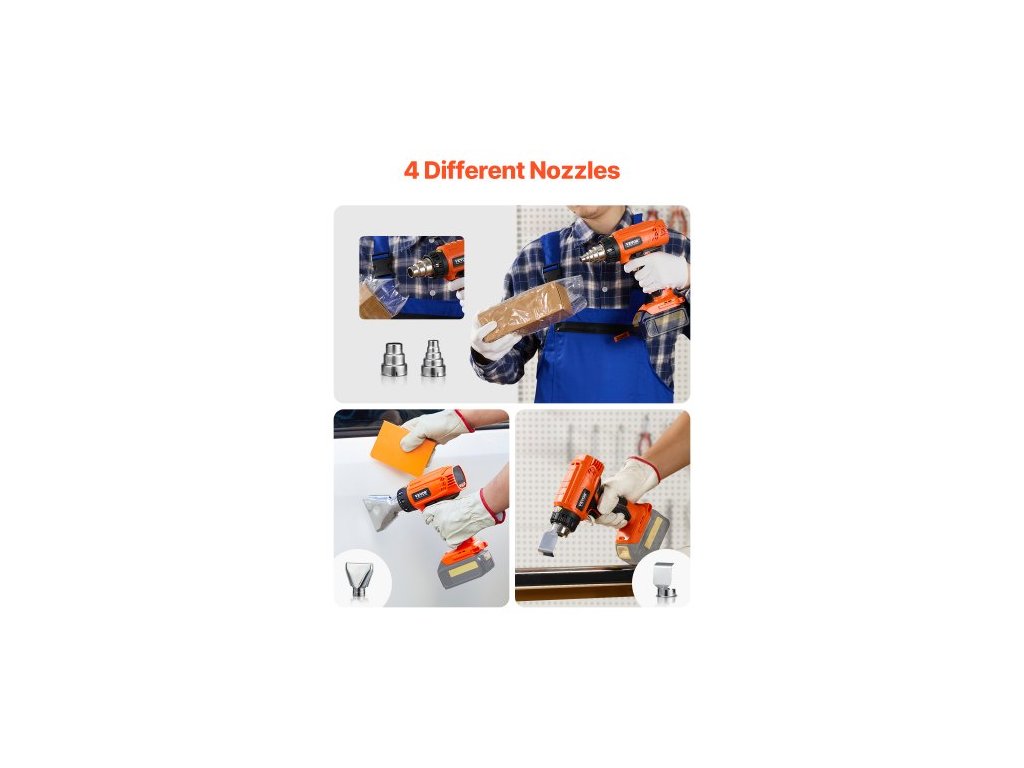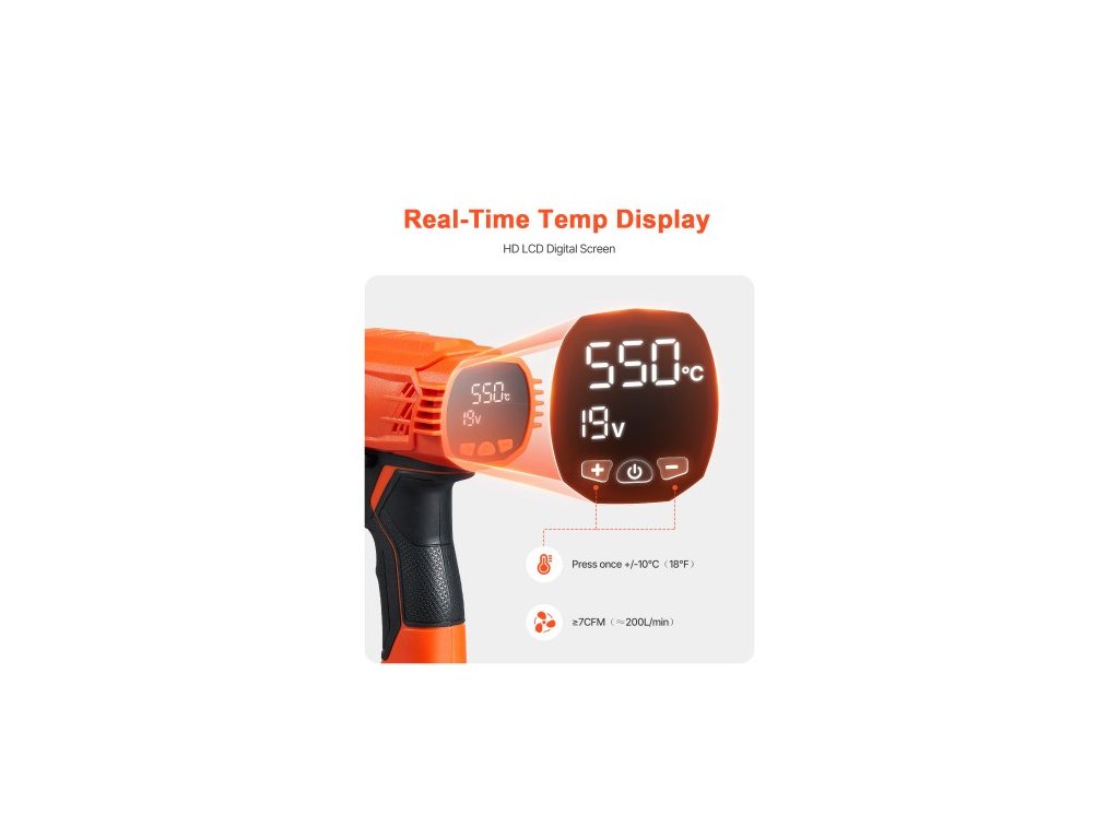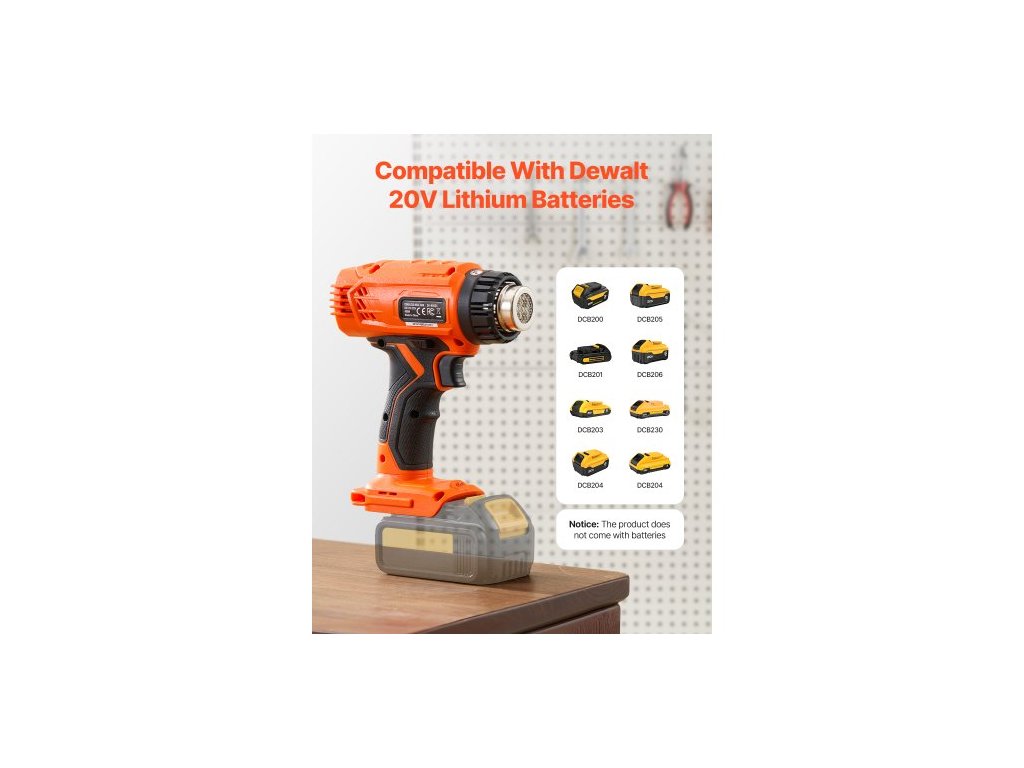 Akumulátorová horkovzdušná pistole , horkovzdušná pistole kompatibilní s lithiovými bateriemi DEWALT 20V, smršťovací pistole s LCD displejem a LED světlem, víceúrovňová regulace teploty a 4 trysky, ideální pro smršťování bužírek, ovíjení PVC fólií a tvoření.Profesionální nářadí