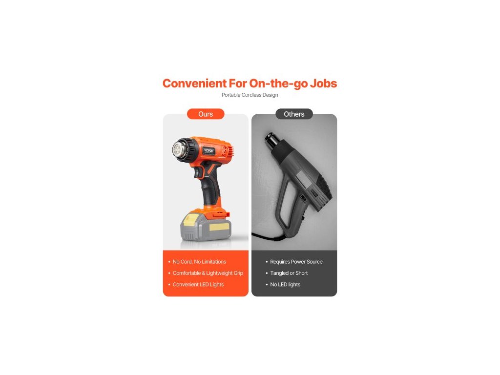 Akumulátorová horkovzdušná pistole , horkovzdušná pistole kompatibilní s lithiovými bateriemi DEWALT 20V, LCD displej, smršťovací pistole s LED světlem, víceúrovňová teplota a 4 trysky, ideální pro smršťovací bužírky, PVC fólii, tvoření