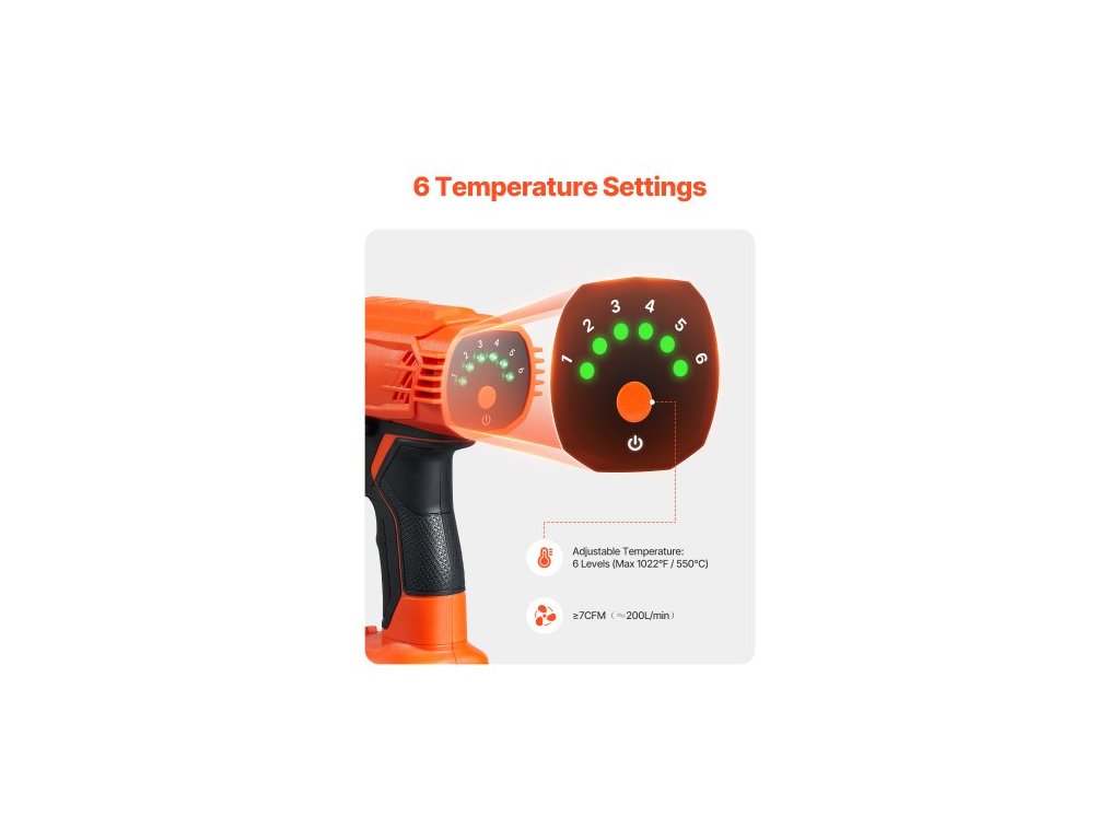 Akumulátorová horkovzdušná pistole , horkovzdušná pistole kompatibilní s lithiovými bateriemi DEWALT 20V, max. 1022℉ smršťovací pistole s LED světlem, 6 teplotními a 4 tryskami, ideální pro smršťování bužírek, balení PVC fólií, odstraňování barev