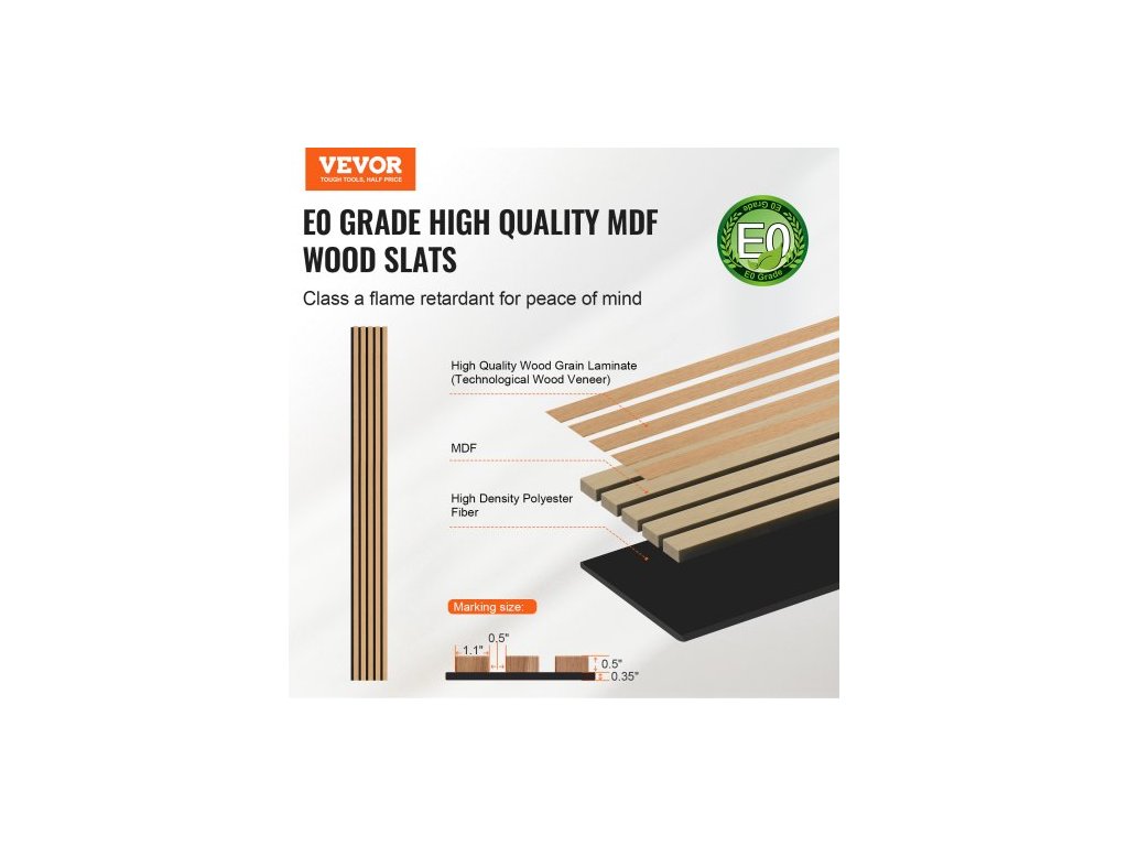 Akustické panely z dřevěných lamel, 7,9 x 94,5 palce, akcentové dřevěné stěnové panely z MDF pro moderní interiérové dekorace, stěnové panely z imitace dřeva pro redukci hluku, světlý dubPřírodní harmonie