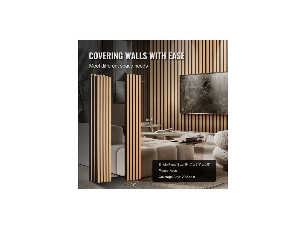 Akustické panely z dřevěných lamel, 7,9 x 94,5 palce, MDF akcentové dřevěné stěnové panely pro moderní interiérové dekorace, stěnové panely z imitace dřeva pro redukci hluku, světlý dub