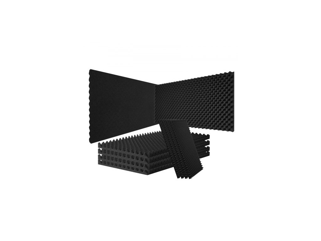 Akustické pěnové panely , balení 4 kusů, 48 x 24 x 2 palce, zvukotěsné stěnové panely s vejcovitým designem, ohnivzdorné akustické panely, zvukově izolační panely pro stěny a stropy studia, černé