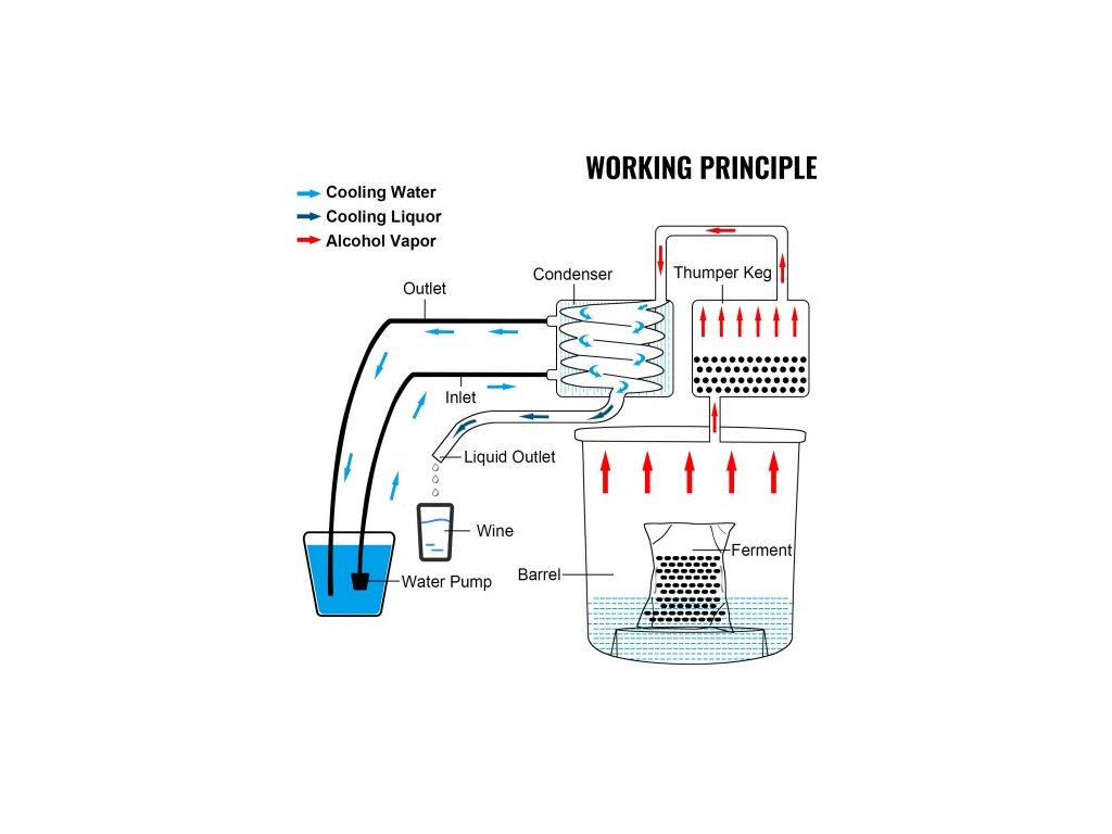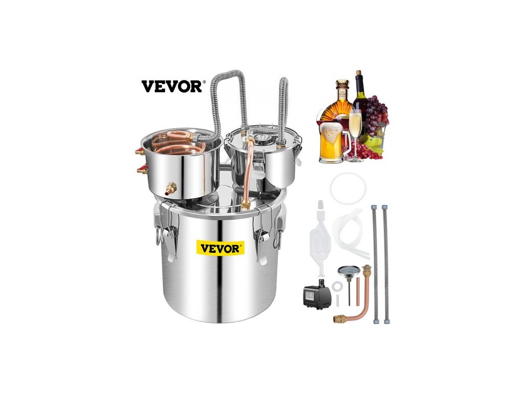 Alcohol Destilátor, 50l SUS vodní lihový destilátor s kondenzátorem a sudem Thumper, 13,2galový kotel na víno s měděnou trubkou, sada pro domácí vaření piva s vestavěným teploměrem pro kutily na whisky, víno, brandy.