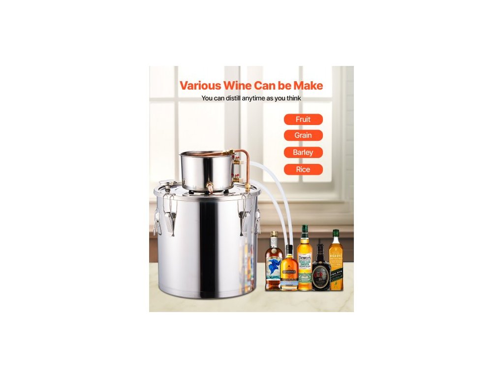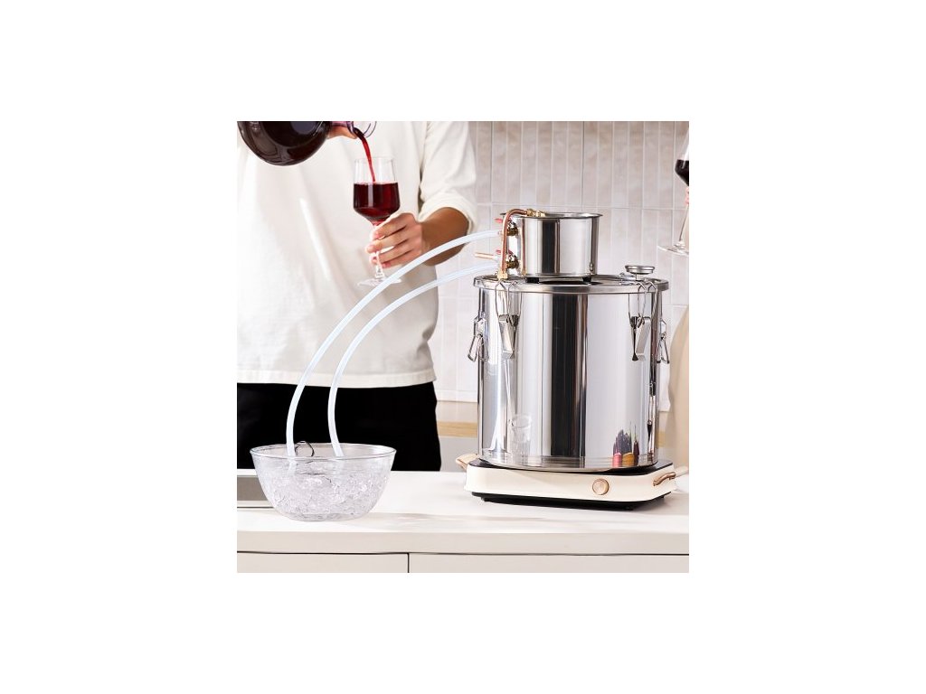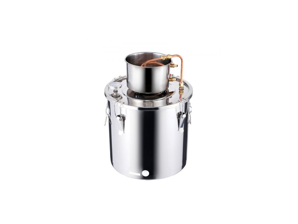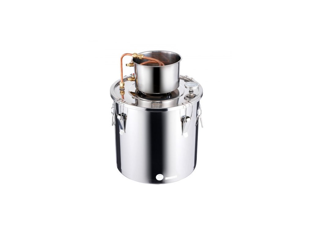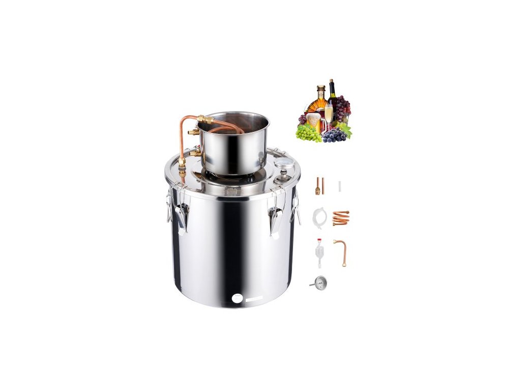 Destilační přístroj na alkohol , nerezová ocelová palírna na vodu a alkohol o objemu 30 l s měděnou cívkou, sada pro domácí vaření piva, rafinaci a fermentaci s teploměrem, na víno, whisky, brandy, stříbrnáKompletní destilační sada