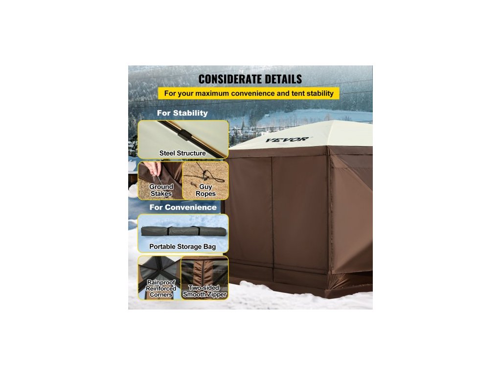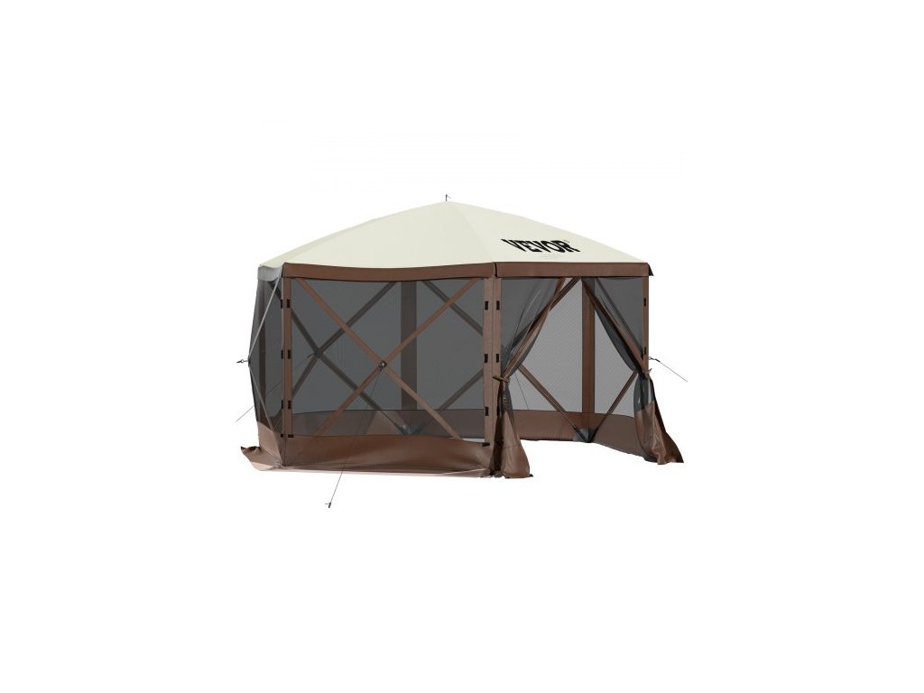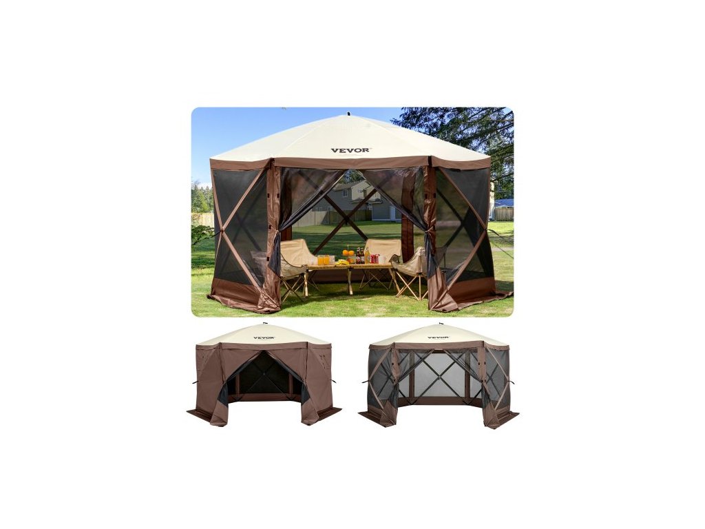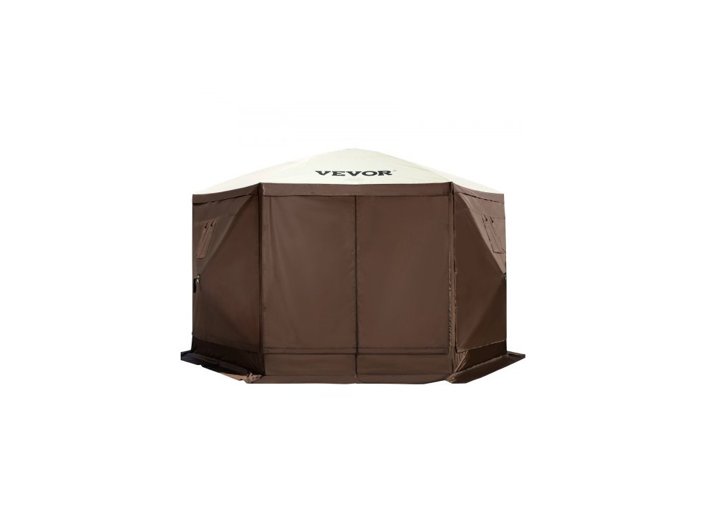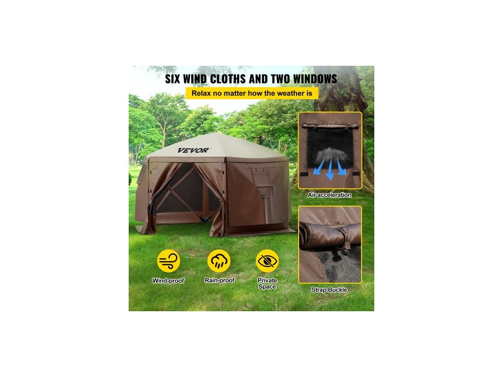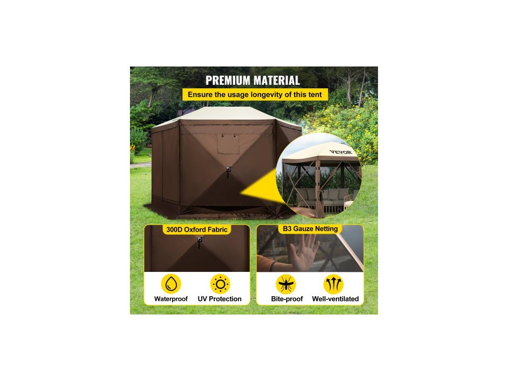 altán s plachtou, 10 x 10 stop, 6stranný rozkládací kempingový přístřešek s okny ze síťoviny, přenosná taška, kolíky do země, velké stínicí stany pro venkovní kempování, trávník a zahraduVelké krytí stanu
