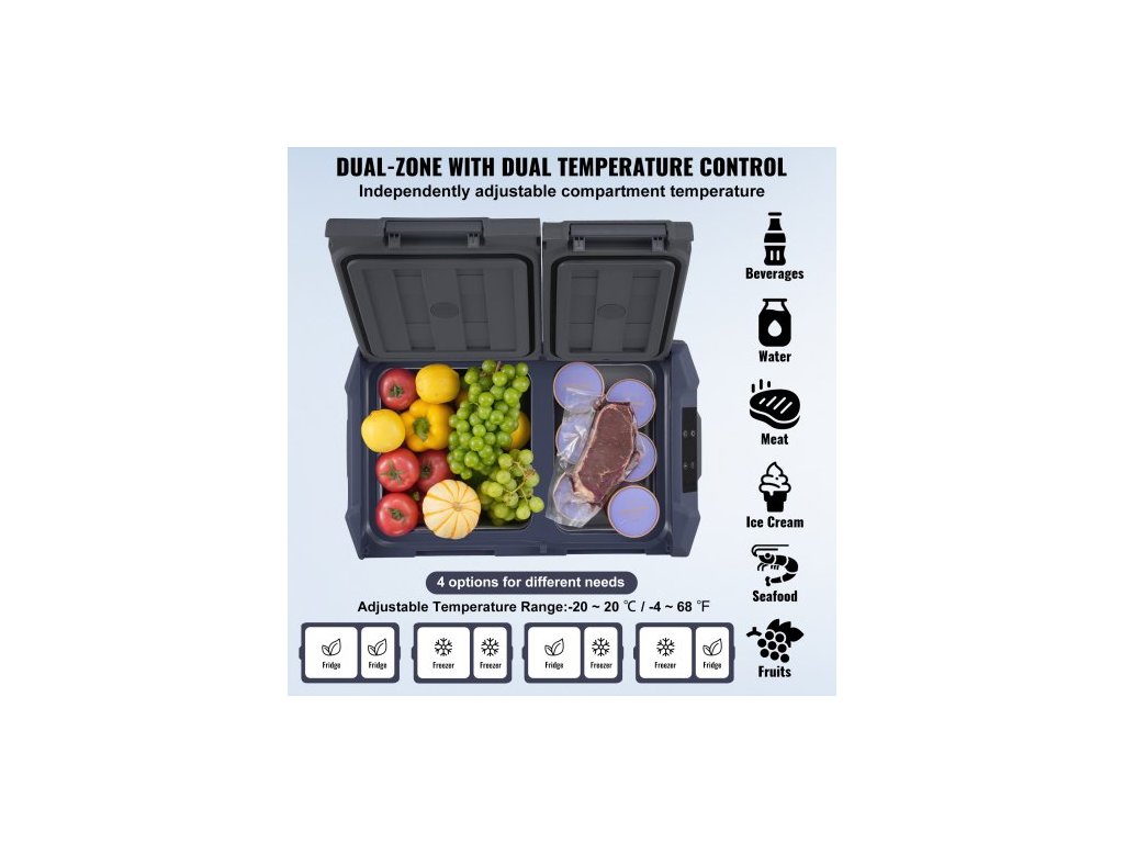 Autochladnička , 12V autochladnička, 25l přenosná dvouzónová mraznička, nastavitelný rozsah -4℉-68℉, kompresorová chladnička 12/24V DC a 100-240V AC pro venkovní použití, kempování, obytné vozy