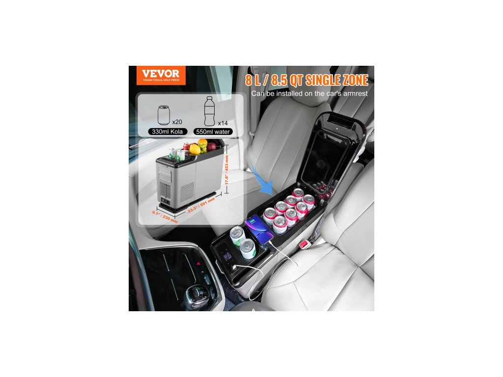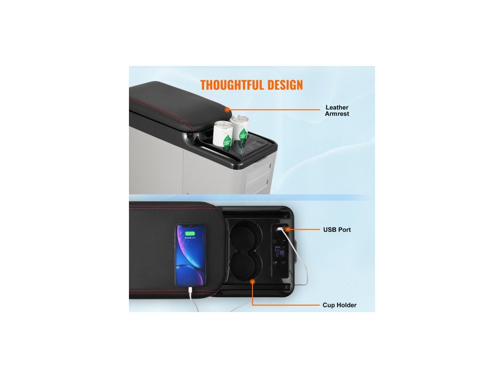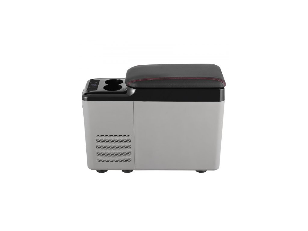 Autochladnička , 12V autochladnička s loketní opěrkou, přenosná mraznička o objemu 15 l s jednou zónou, nastavitelný rozsah -4℉-68℉, kompresorová chladnička 12/24V DC a 100-240V AC pro venkovní použití a kempováníAutochladnička s loketní opěrkou