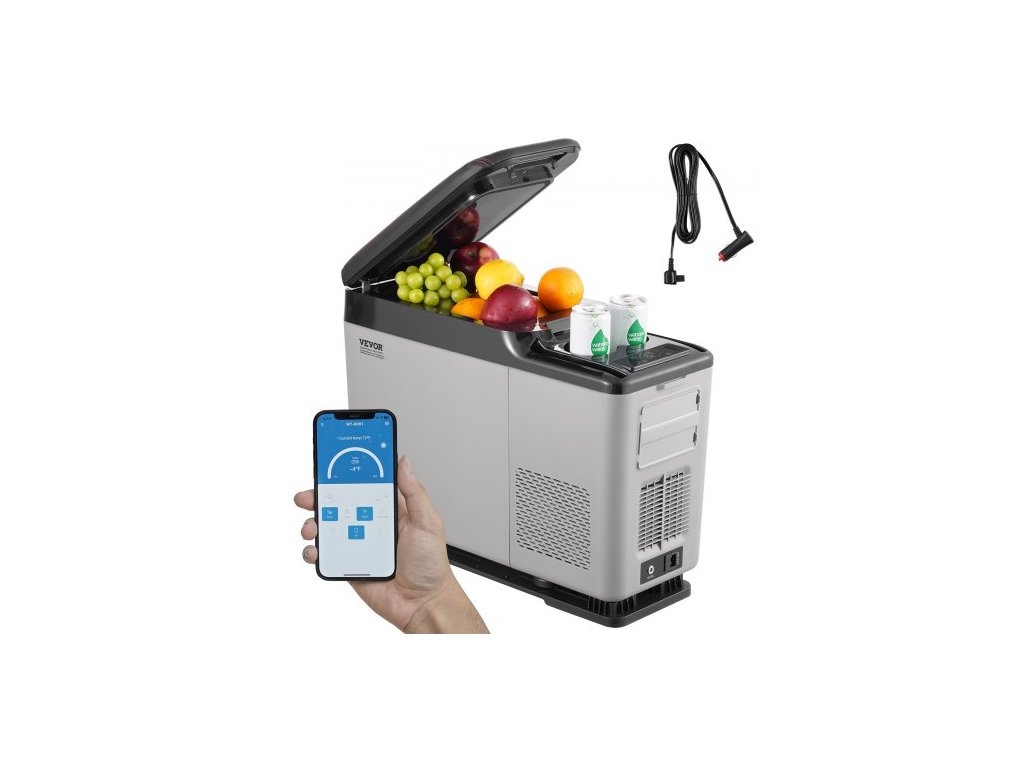Autochladnička , 12V autochladnička s loketní opěrkou, 15l přenosná mraznička s jednou zónou, nastavitelný rozsah -4℉-68℉, kompresorová chladnička 12/24V DC a 100-240V AC pro venkovní použití a kempování