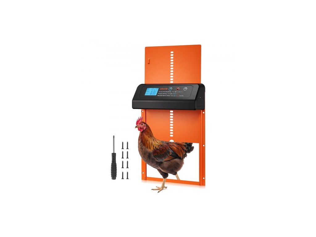 Automatická dvířka kurníku , bateriově napájená dvířka kurníku s časovačem a manuálním nastavením, zabezpečení proti skřípnutí, odolná hliníková slitina, otvírač branky pro kuřata s vodotěsným těsněním, oranžováChraňte své hejno