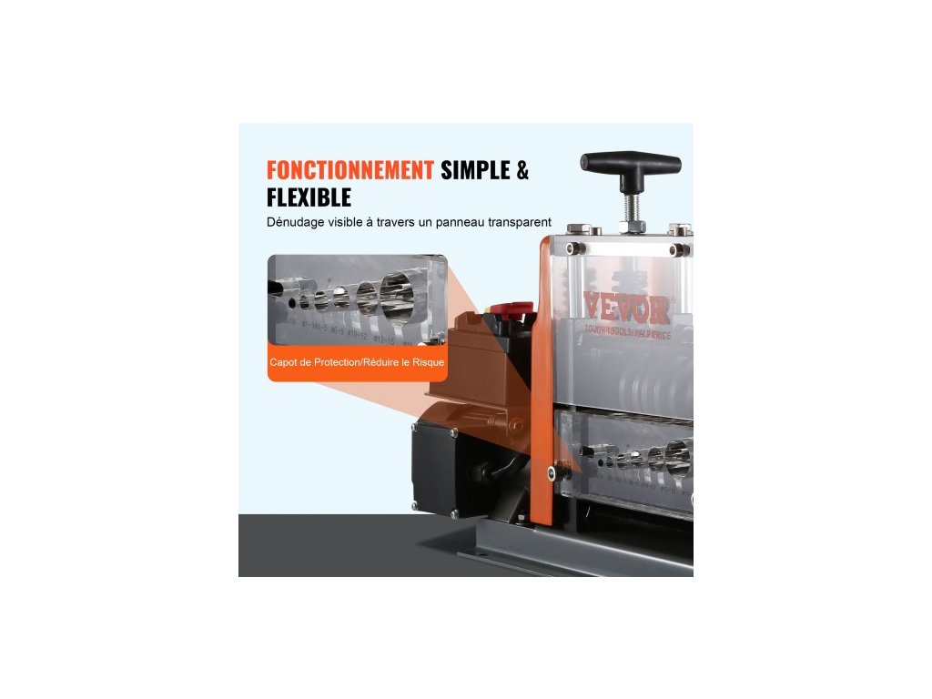 Automatický odizolovací stroj , elektromotorický odizolovací kleště na kabely 1,5 mm–25 mm, 60 W, odizolovací kleště s viditelnou hloubkou odizolování, 6 kulatých a 1 plochý kanál pro recyklaci měděného šrotuPrůhledný akrylový kryt