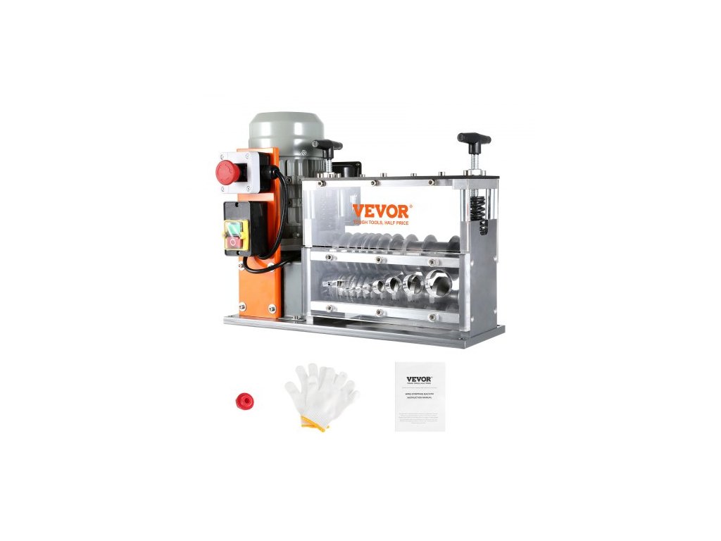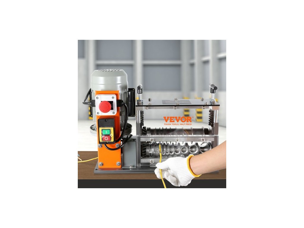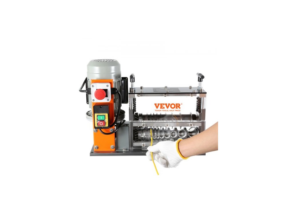 Automatický odizolovací stroj , elektromotorický odizolovací kleště na kabely 1,5 mm–40 mm, 750 W, odizolovací kleště 30 m/min s viditelnou referencí hloubky odizolování, 10 kanálů pro recyklaci měděného šrotu
