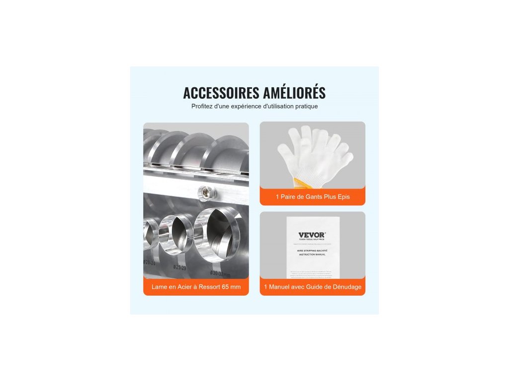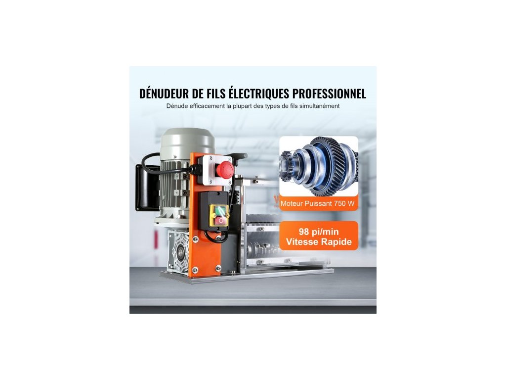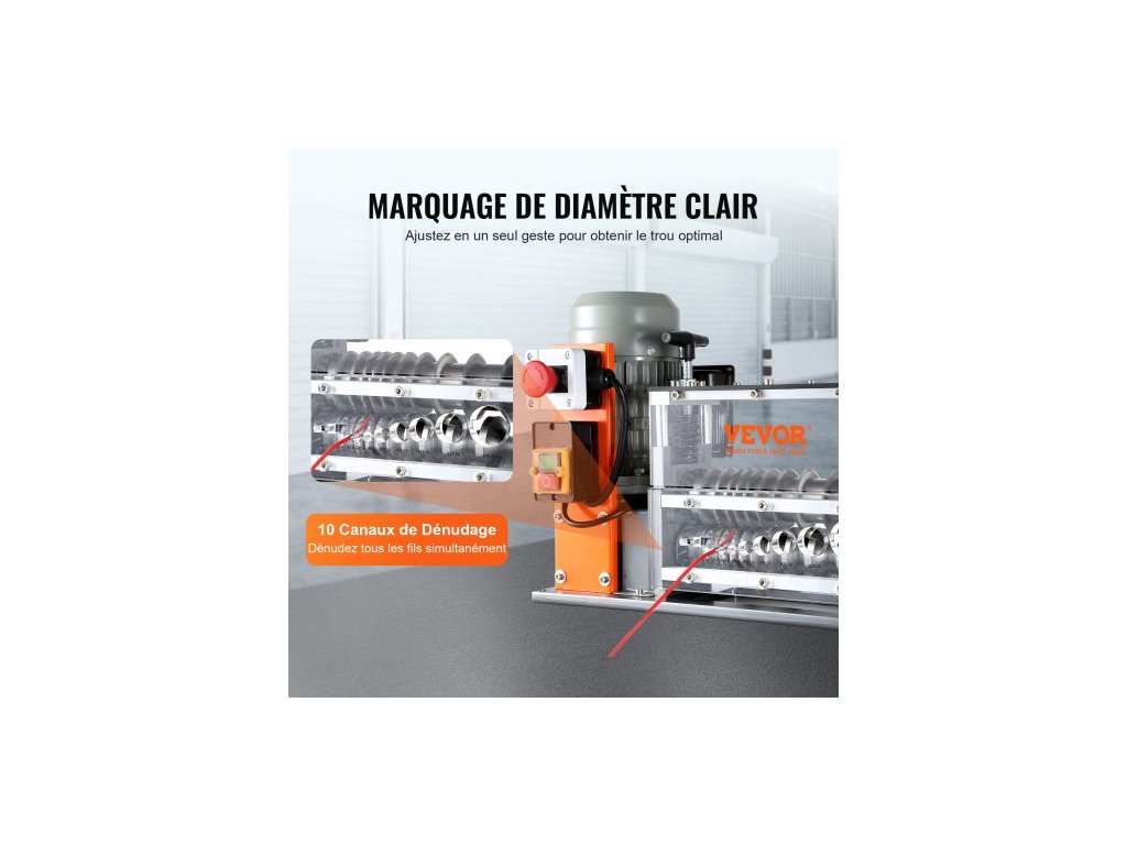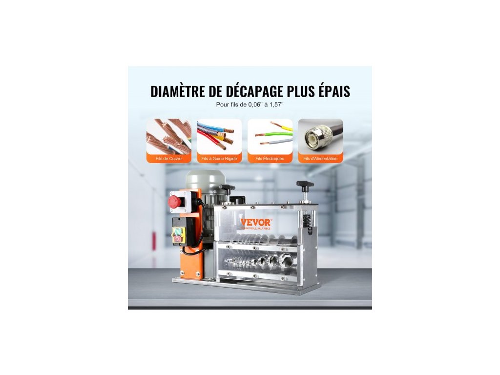 Automatický odizolovací stroj , elektromotorický odizolovací kleště na kabely 1,5 mm–40 mm, 750 W, odizolovací kleště 30 m/min s viditelnou referencí hloubky odizolování, 10 kanálů pro recyklaci měděného šrotuPevná konstrukce z litého hliníku