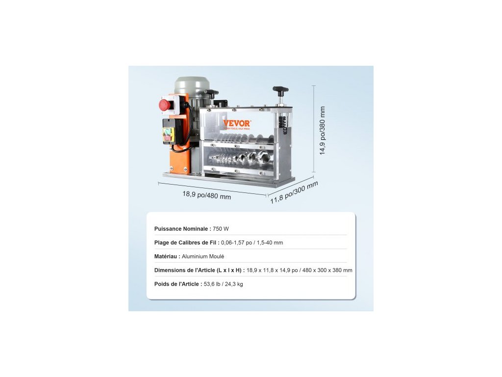 Rozsah tloušťky vodiče: 0,06–1,57 palce / 1,5–40 mm,Rozměry položky (D x Š x V): 18,9 x 11,8 x 14,9 palce / 480 x 300 x 380 mm,Model: BXJDD750,Jmenovitý výkon: 750 W,Materiál: Litý hliník,Napětí a frekvence: AC 220–240 V / 50 Hz,Hmotnost položky: 53,6 24,3 kg