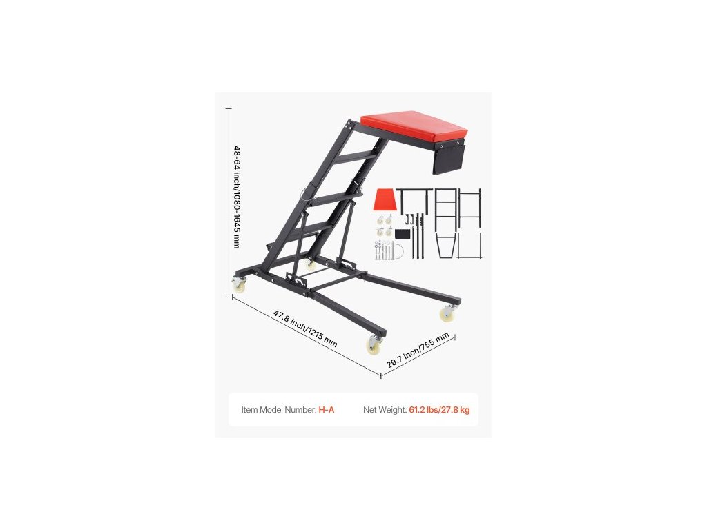 Automotive Top Creeper, Motorový Creeper 42,5"-64,8", Nosnost 400 LBS Vysoký Top Creeper, 4 Otočná Kolečka, Polstrovaná Podlaha, Creeper pro domácí Garáž, Dílnu, Opravy a Údržbu