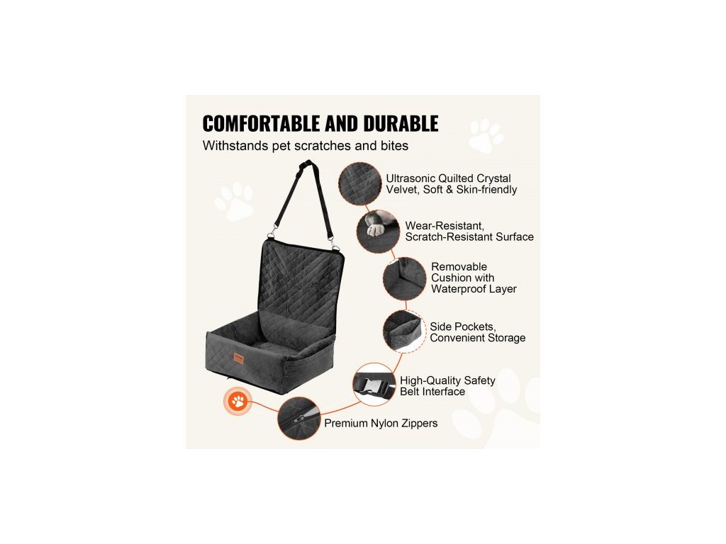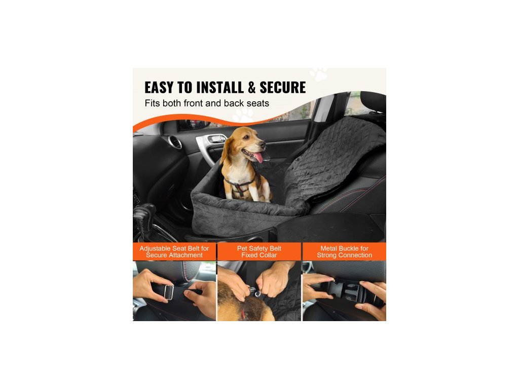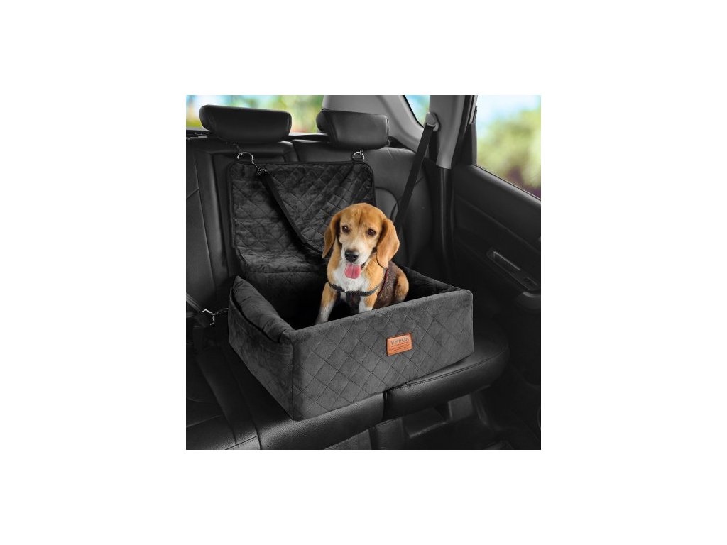Autosedačka pro psy, psí podsedák do auta s úložnou kapsou, bezpečnostní vodítko s připínáním, výplň z houbičky a PP bavlny, pelíšek do auta pro malé a střední psy do 18 kg, černá