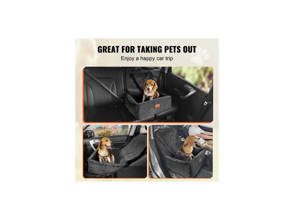 Autosedačka pro psy , psí podsedák do auta s úložnou kapsou, bezpečnostní vodítko s připínáním, houbička a výplň z PP bavlny, pelíšek do auta pro malé a střední psy do 18 kg, černáAutosedačka pro domácí mazlíčky