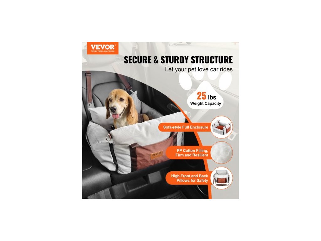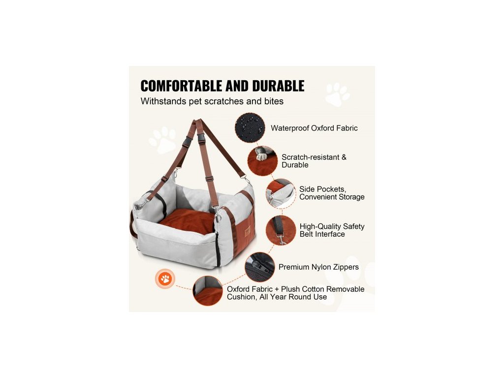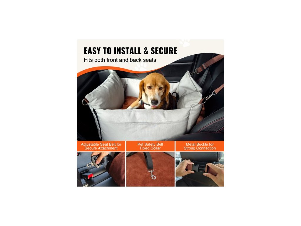 Autosedačka pro psy , vodotěsná psí sedačka do auta s bočními rukojeťmi a úložnou kapsou, bezpečnostní vodítko s klipem a výplň z PP bavlny, pelíšek do auta pro malé psy do 11 kg, šedáAutosedačka pro domácí mazlíčky