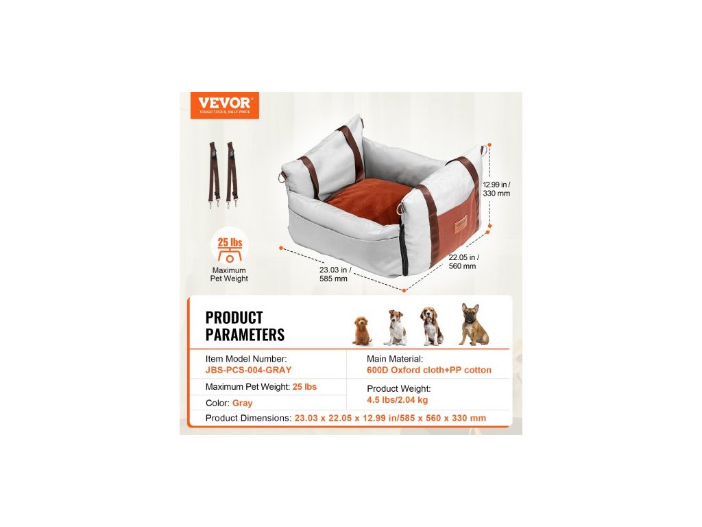 Barva: Šedá,Číslo modelu položky: JBS-PCS-004-GRAY,Hmotnost výrobku: 2,04 kg,Maximální hmotnost domácího mazlíčka: 11 kg,Rozměry výrobku: 585 x 560 x 330 mm,Hlavní materiál: Oxfordská tkanina 600D + PP bavlna