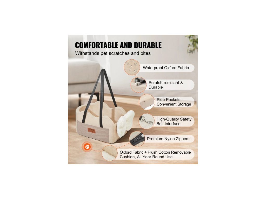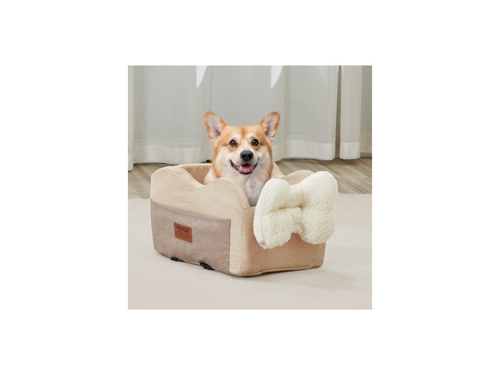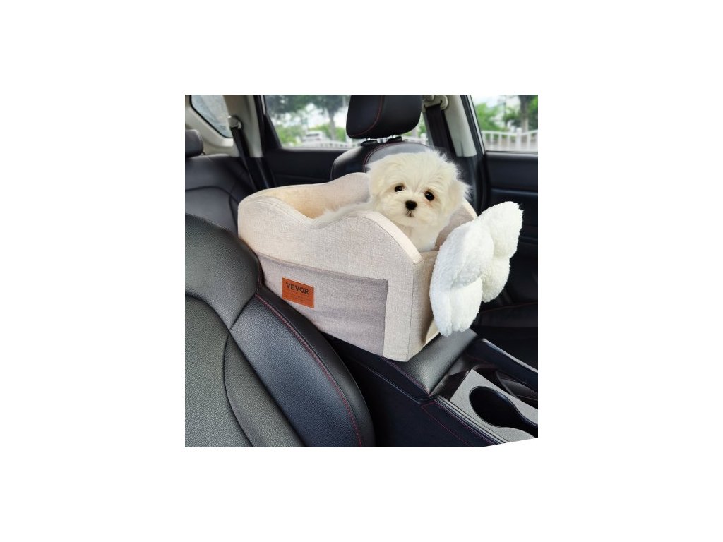 Autosedačka pro psy do konzole, středová konzolová psí sedačka pro malé psy, autosedačka pro loketní opěrku v autě s připínacím vodítkem, nastavitelné popruhy, nosnost až 3,6 kg, světle hnědáAutosedačka pro domácí mazlíčky