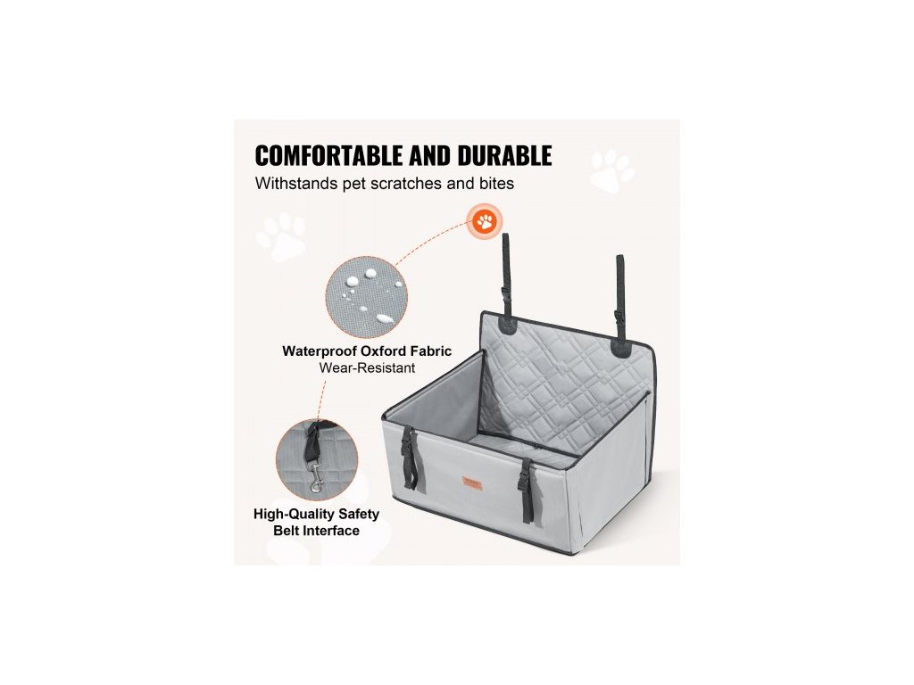 Autosedačka pro psy , vodotěsná psí sedačka do auta s podpůrným rámem, autosedačka pro domácí mazlíčky s bezpečnostním vodítkem na klip, pelíšek do auta pro malé, střední a velké psy do 22 kg, šedá