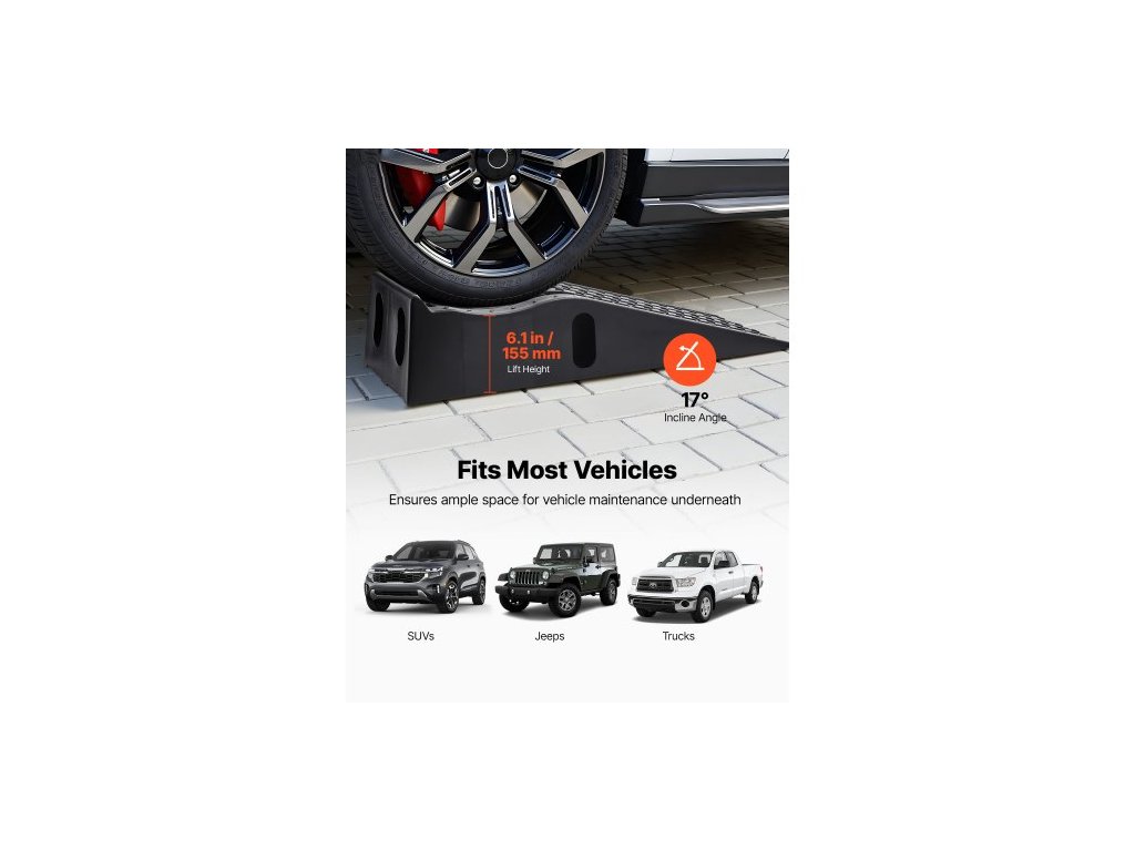 Nájezdové rampy pro automobily, 2 ks, celková hmotnost 5897 kg, výška zdvihu 155 mm, přenosné vysoce profilové servisní rampy pro údržbu domácích garáží a výměnu oleje, odolné pro opravy nákladních a SUV vozidel, černéNájezdové rampy pro opravy automobilů