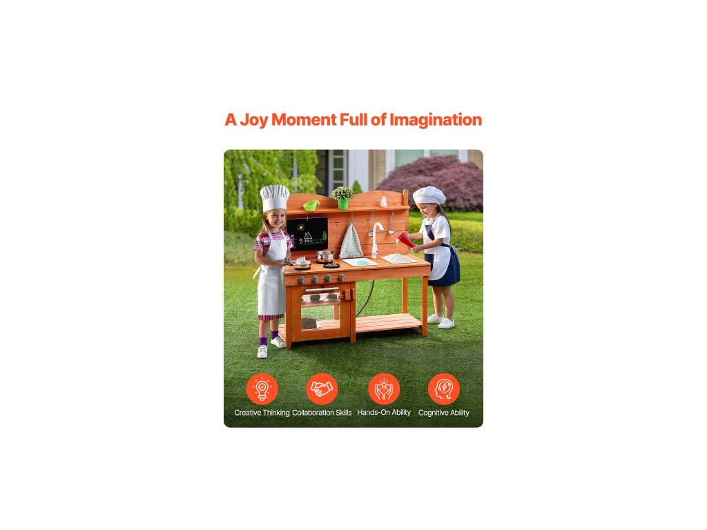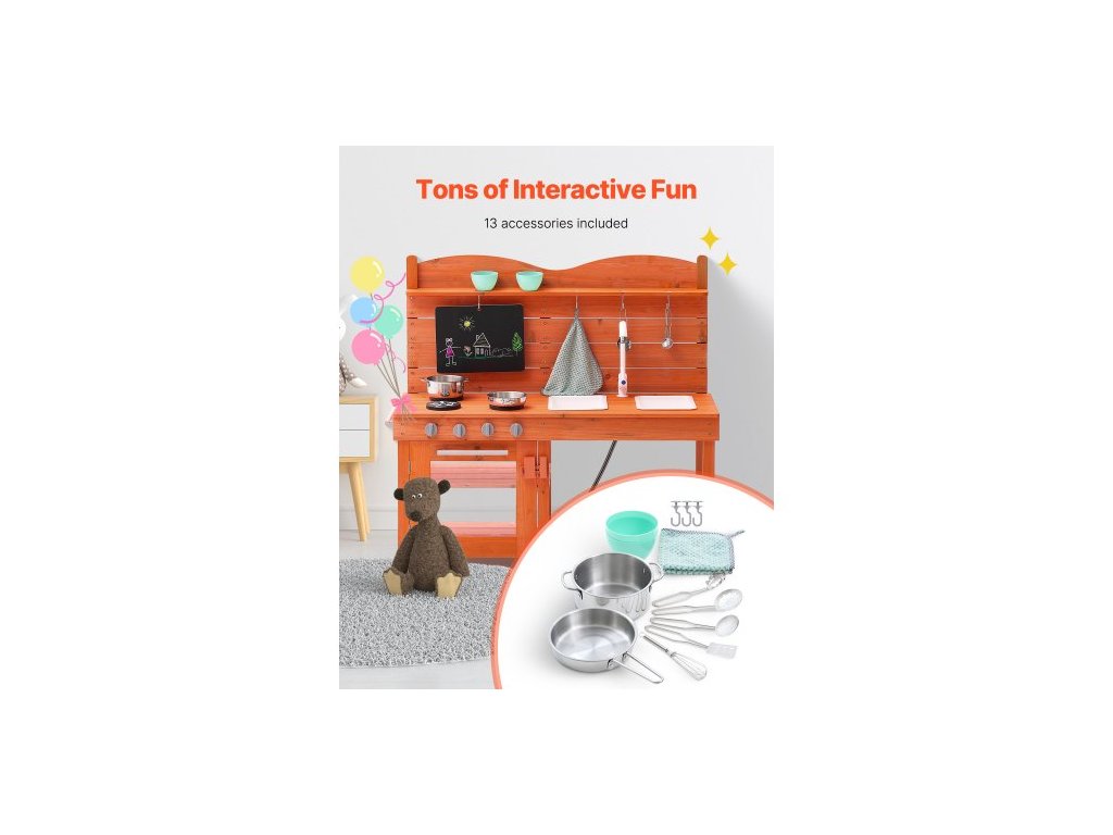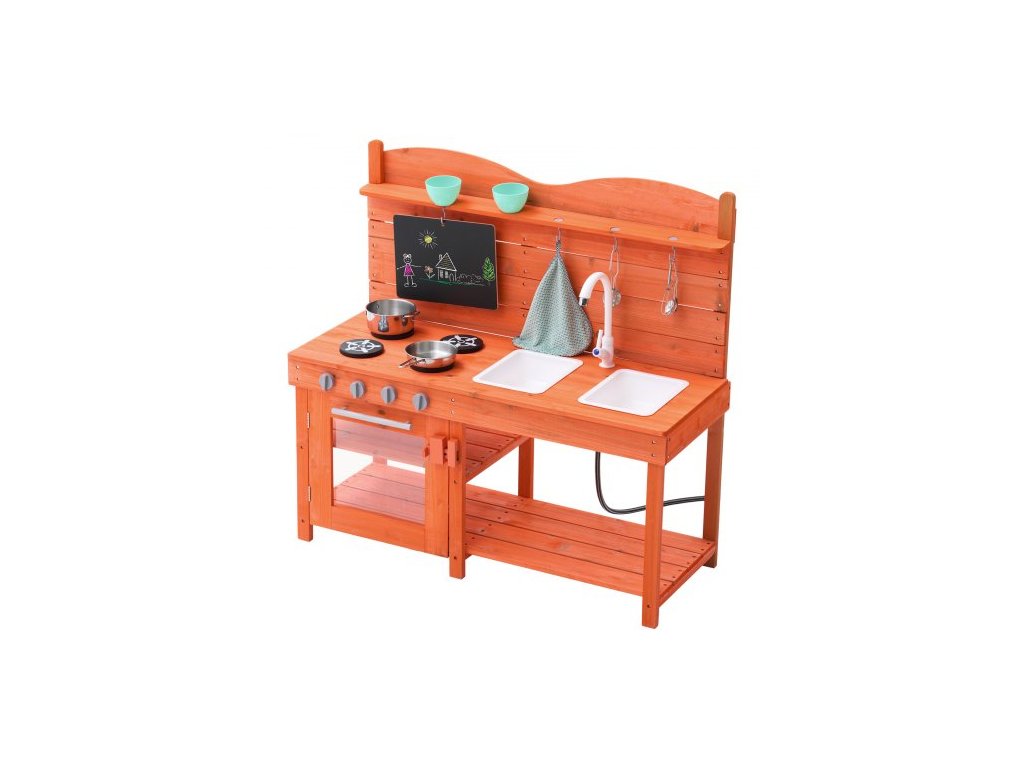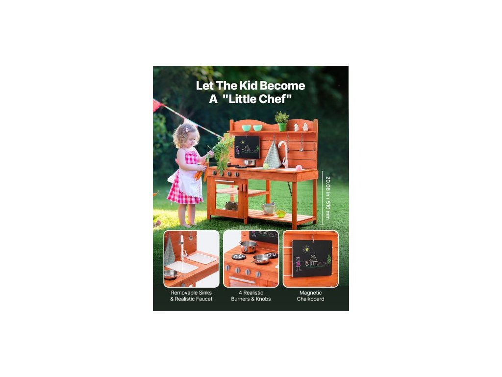 Bahenní kuchyňka pro děti, dřevěná sada kuchyňky na hraní, venkovní sada pro batolata a chlapce s potravinami, kuchyňka na hraní s vařiči, dřezem, kohoutkem, tabulí, nádobím, hrnci a příslušenstvímBezpečná venkovní barva