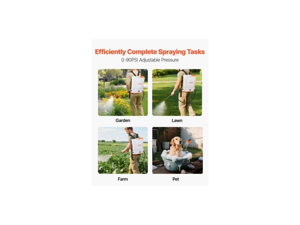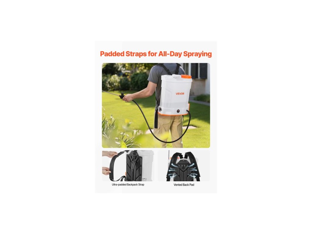 Parametry hadice: PVC síťovaná hadice, délka 1,2 m, Hlavní materiály: PP (polypropylenová) nádrž, rozprašovací tyč ze skelných vláken, rozprašovací tyč z nerezové oceli, plastové trysky, Objem: 12 l (3,2 galonu), Provozní napětí: DC 18 V, Barva: Bílá + oranžová, Číslo modelu položky: XF-12M27-US, Hmotnost výrobku: 2,95 kg / 6,50 lbs, Rozsah výstupního tlaku čerpadla: 0-90 psi, Plynule nastavitelný, Rozměry: 355 × 190 × 425 mm / 13,98 × 7,48 × 16,73 palce