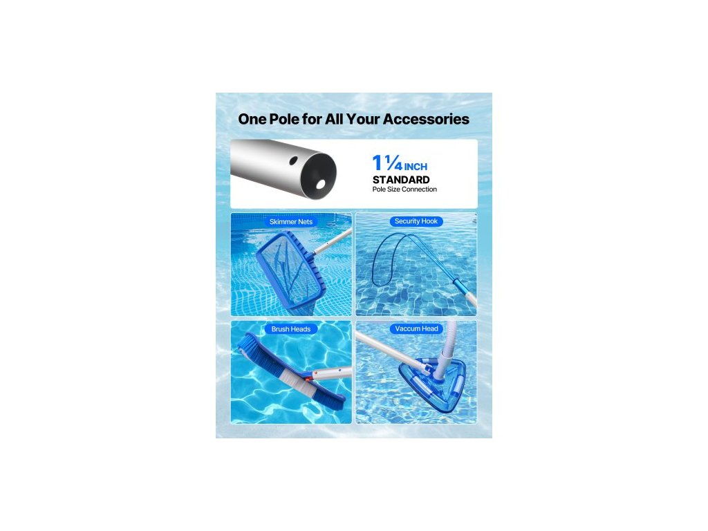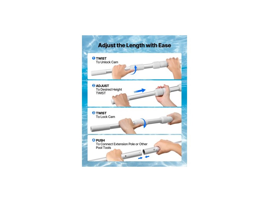 Bazénová tyč , teleskopické tyče na čištění bazénů 1 až 3,65 mm, profesionální nastavitelná teleskopická tyč s prodlužovací tyčí, odolná čisticí tyč pro skimmer, hrábě, kartáč a vysavačSkvělý pomocník při čištění bazénu