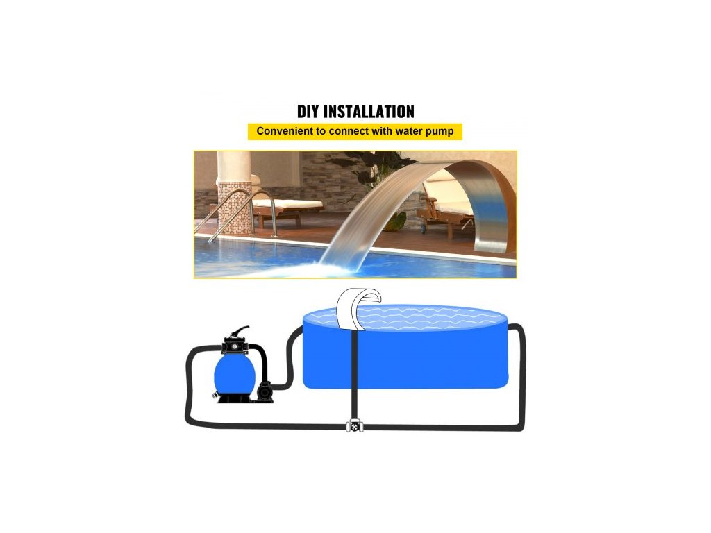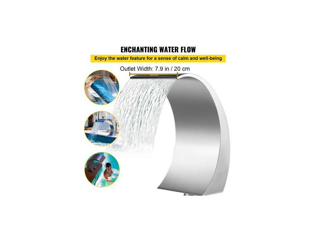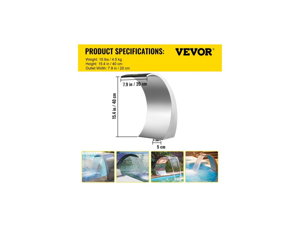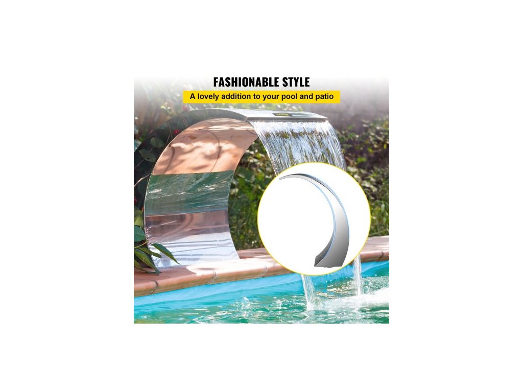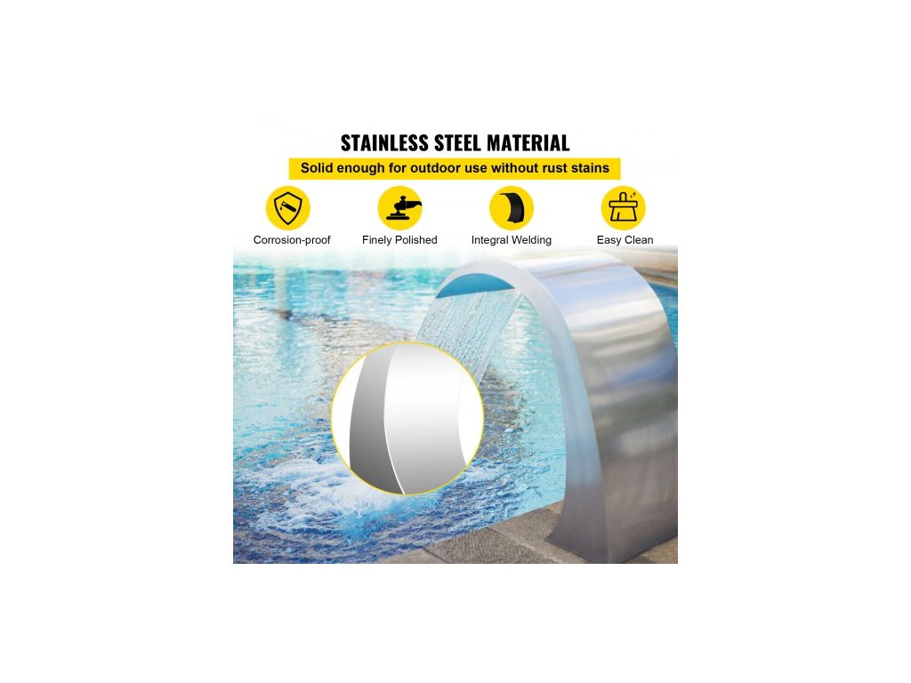 bazénová vodopádová fontána z nerezové oceli, fontána 15,4" x 7,9" x 1,5" stříbrná, pro bazény, zahradu, venkovní vodopády, čirý sestup, vodní prvek