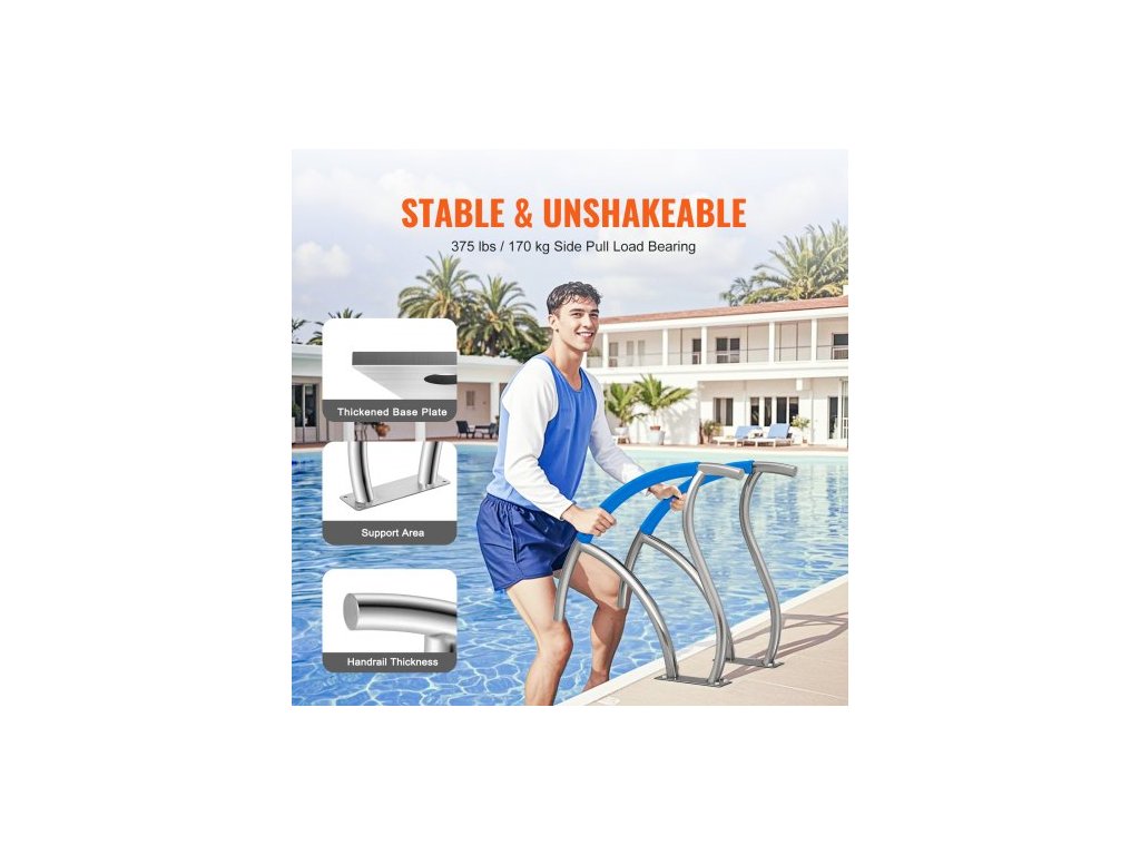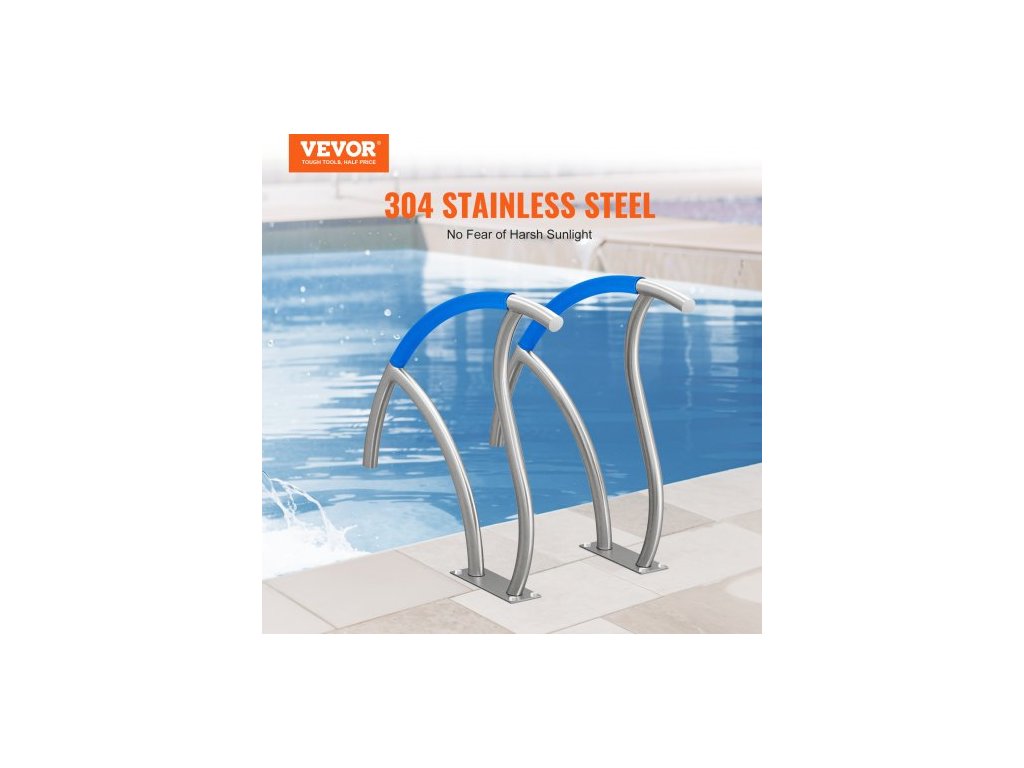 Bazénové madlo , 2 ks, 30x30 palců, nerezová ocel se základní deskou pro vnitřní/venkovní bazény, bezpečnostní zábradlí k bazénu na terasy, madlo odolné proti korozi s krytem a příslušenstvím pro vířivkyBezpečnostní ochrana bazénu