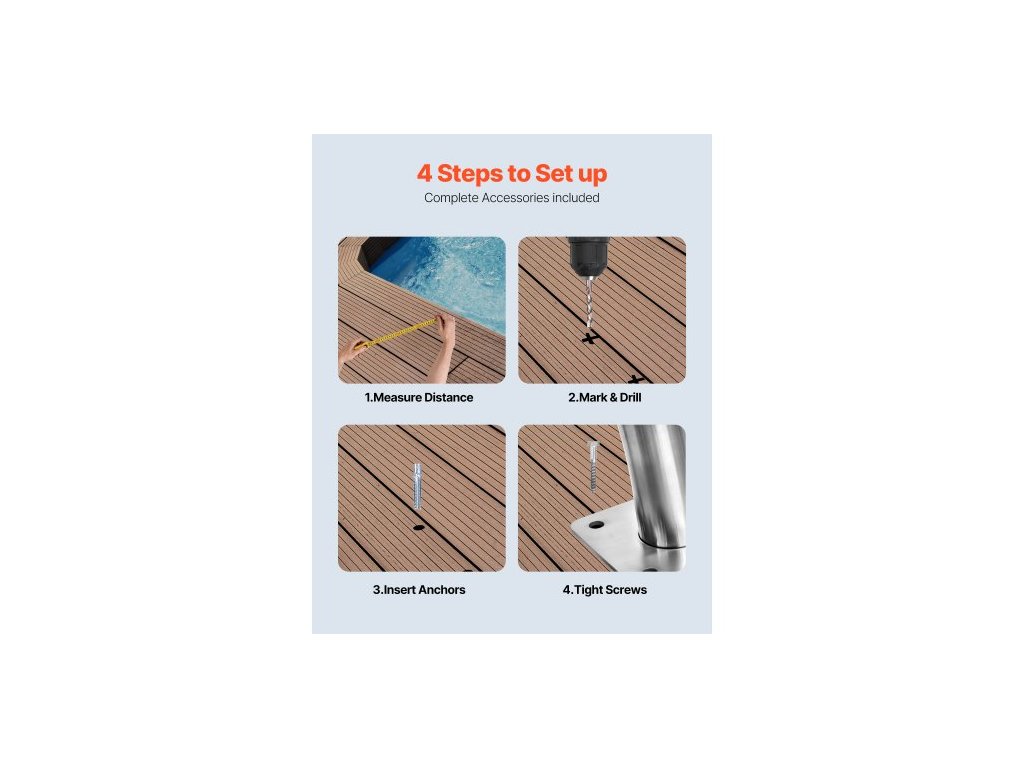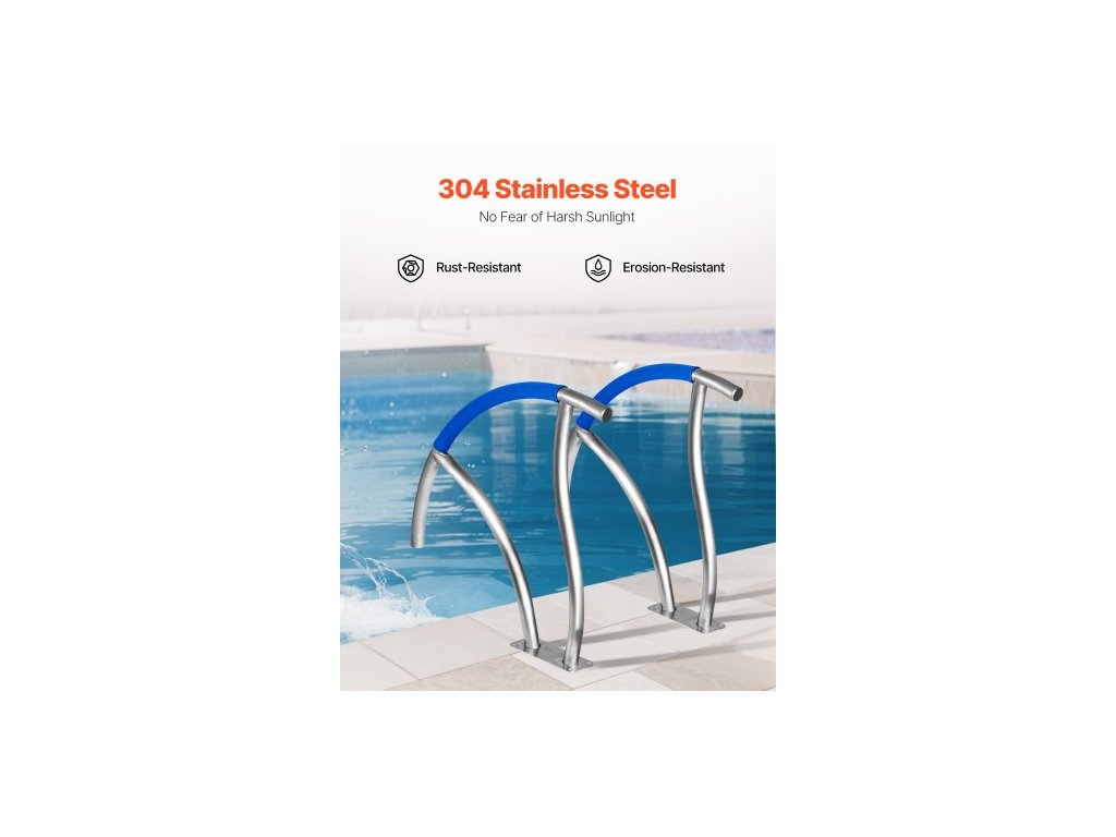 Bazénové madlo , schodišťové zábradlí k bazénu 30" x 30", 2 ks nerezových schodišťových madel s nosností 375 liber, bazénové madlo s rychloupínací základní deskou a kompletní montážní příslušenství