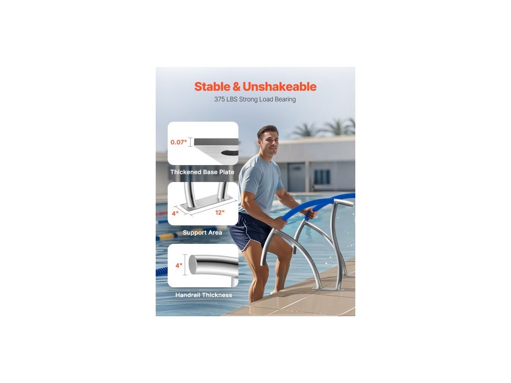 Bazénové madlo , schodišťové zábradlí k bazénu 30" x 30", 2 ks nerezových schodišťových zábradlí s nosností 375 liber, bazénové zábradlí s rychloupínací základní deskou a kompletní montážní příslušenstvíBezpečné bazénové madlo
