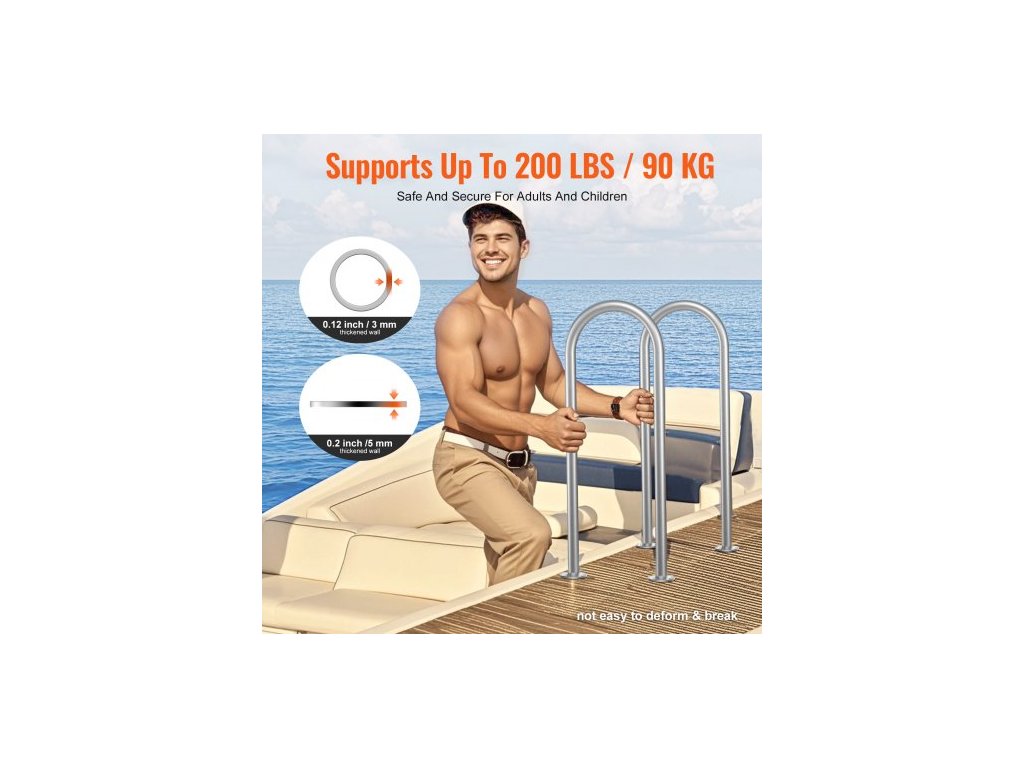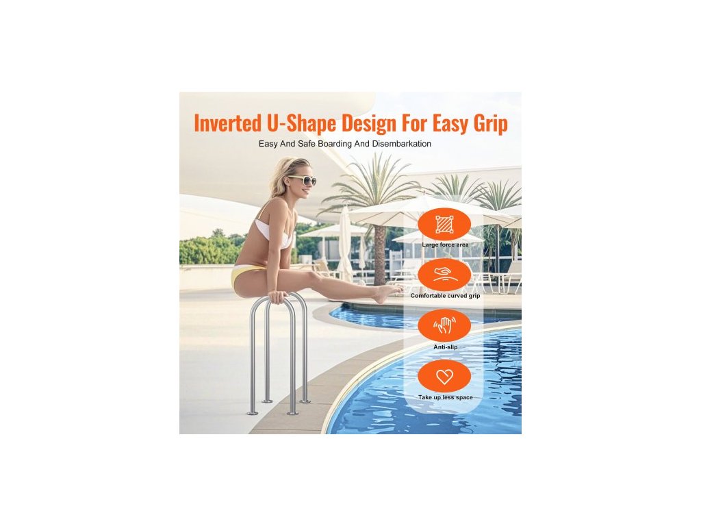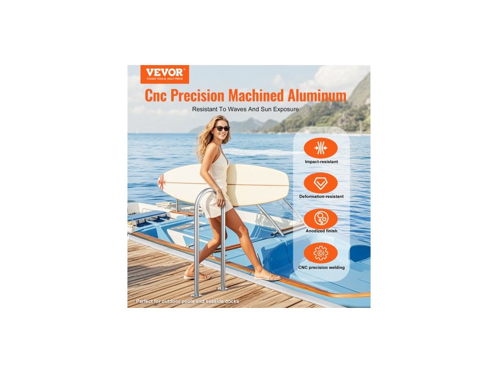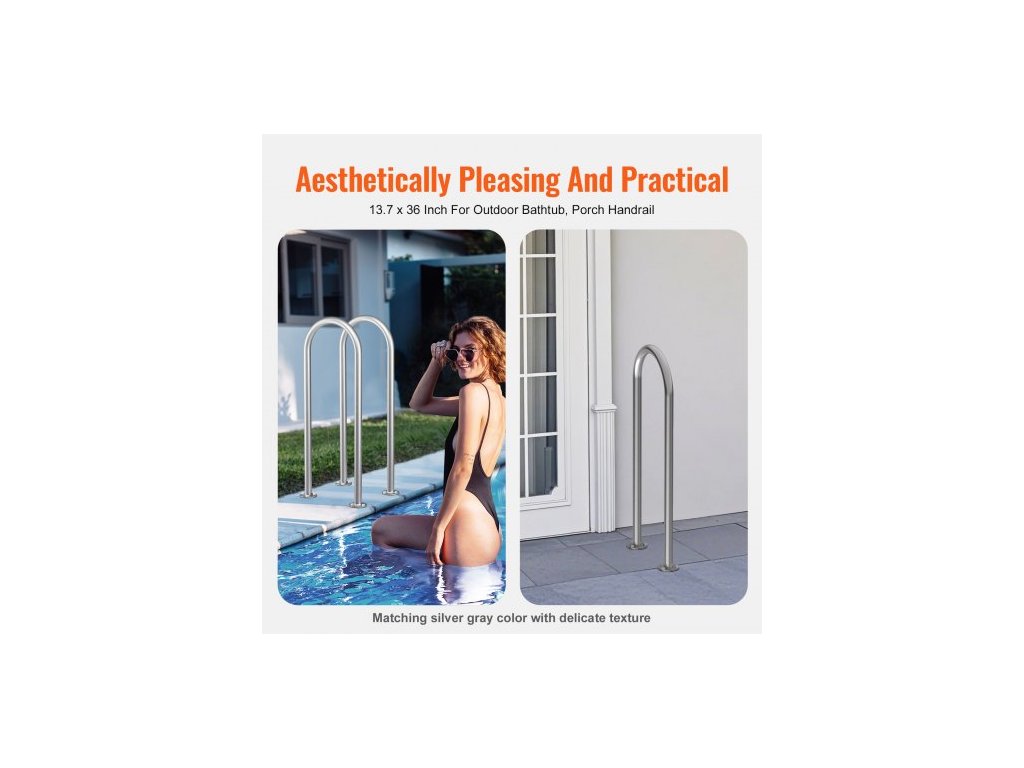 Bazénové madlo , 36 x 13 palců, hliník se základní deskou pro vnitřní/venkovní bazény, humanizované bezpečnostní zábradlí pro bazény na terasy, madlo odolné proti korozi s příslušenstvím pro vířivkyBezpečnostní ochrana doku
