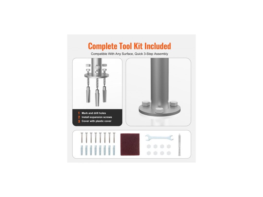 Bazénové zábradlí , 36 x 13 palců, hliník se základní deskou pro vnitřní/venkovní bazény, humanizované bezpečnostní zábradlí pro bazény na terasy, madlo odolné proti korozi s příslušenstvím pro vířivky