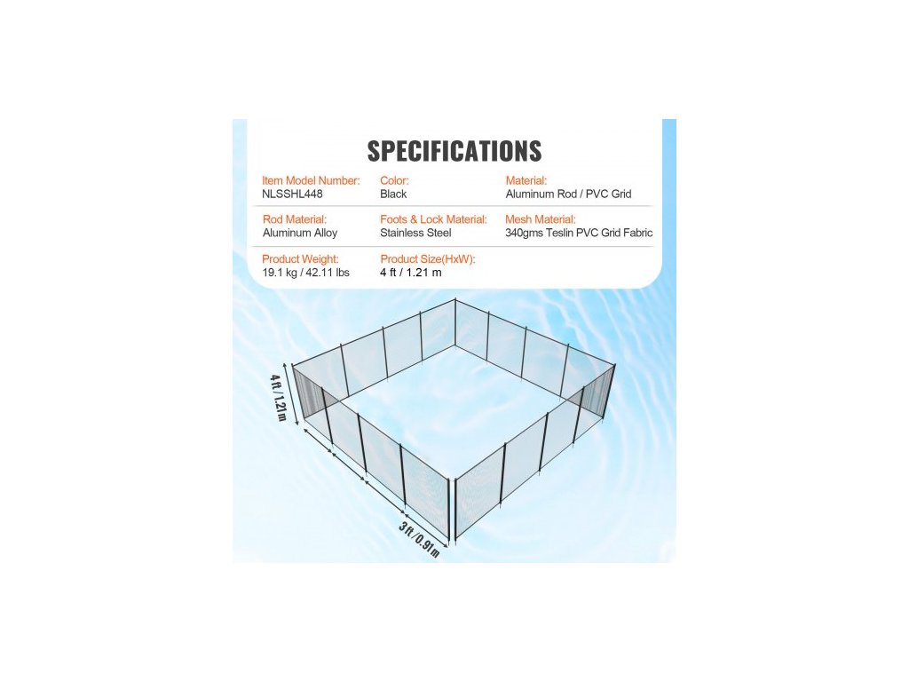Bazénový plot , 1,2 x 14,6 m Odnímatelný bazénový plot pro zapuštěné a venkovní bazényZvýšená bezpečnost