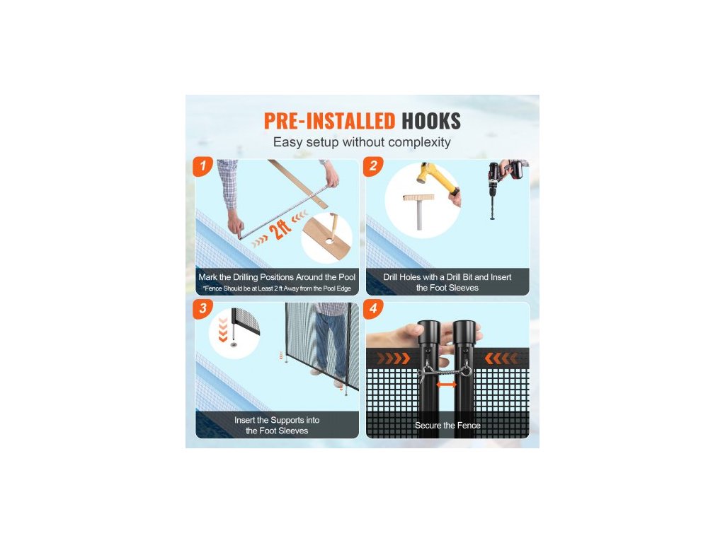 Snadno instalovatelný bezpečnostní plot bazénu