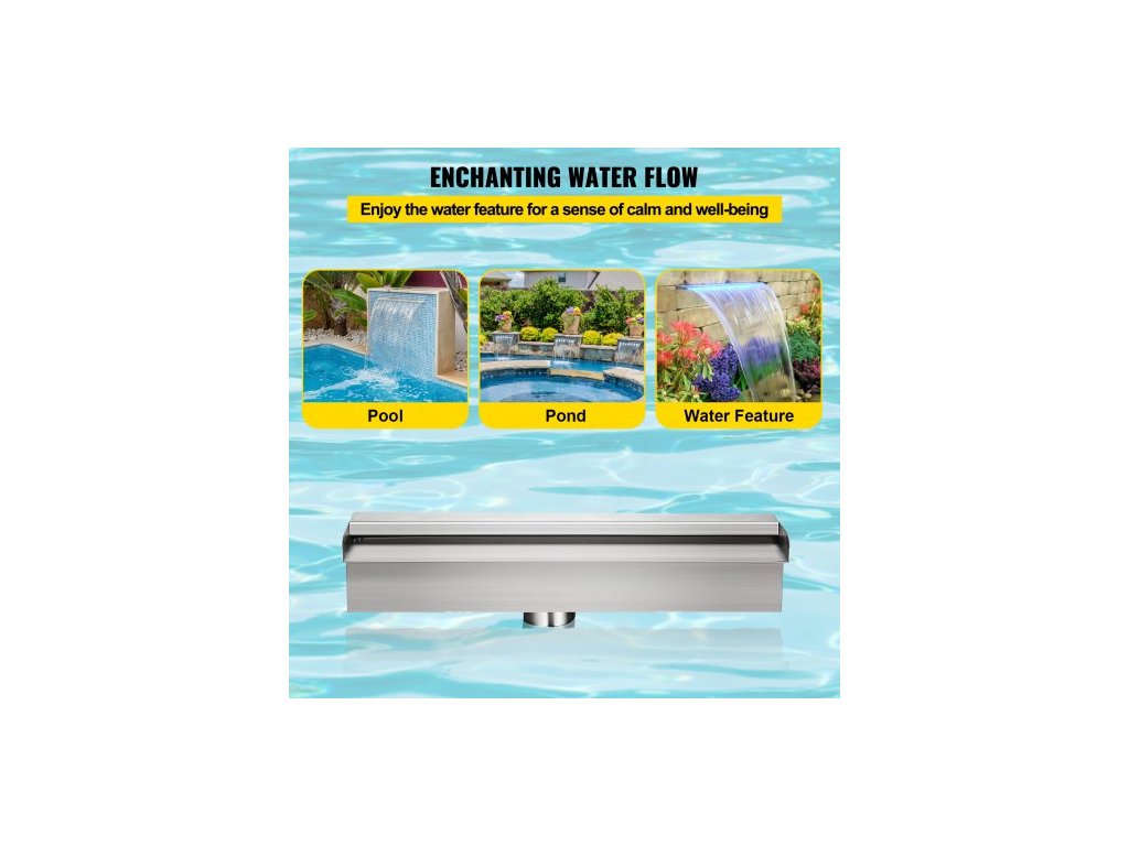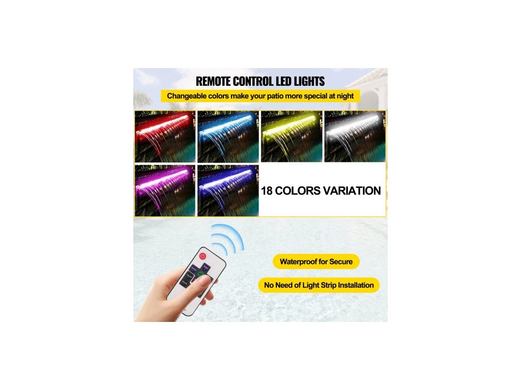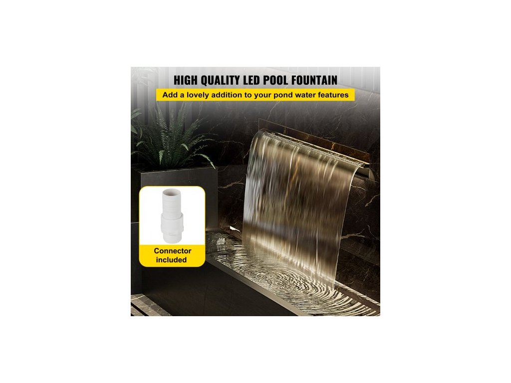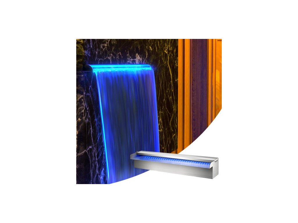 Bazénový vodopádový přeliv 30x11,5x8 cm Nerezová ocelová fontána s barevným LED páskem, hadicovou spojkou, dálkovým ovládáním, odolný proti korozi pro jezírko, venkovní zahradu