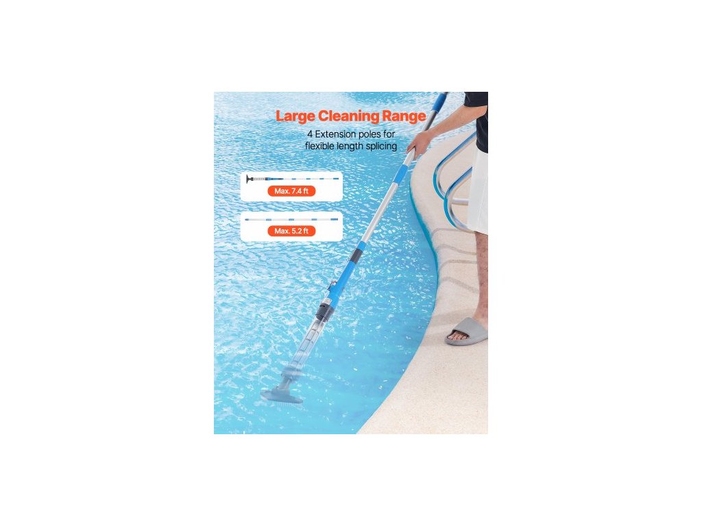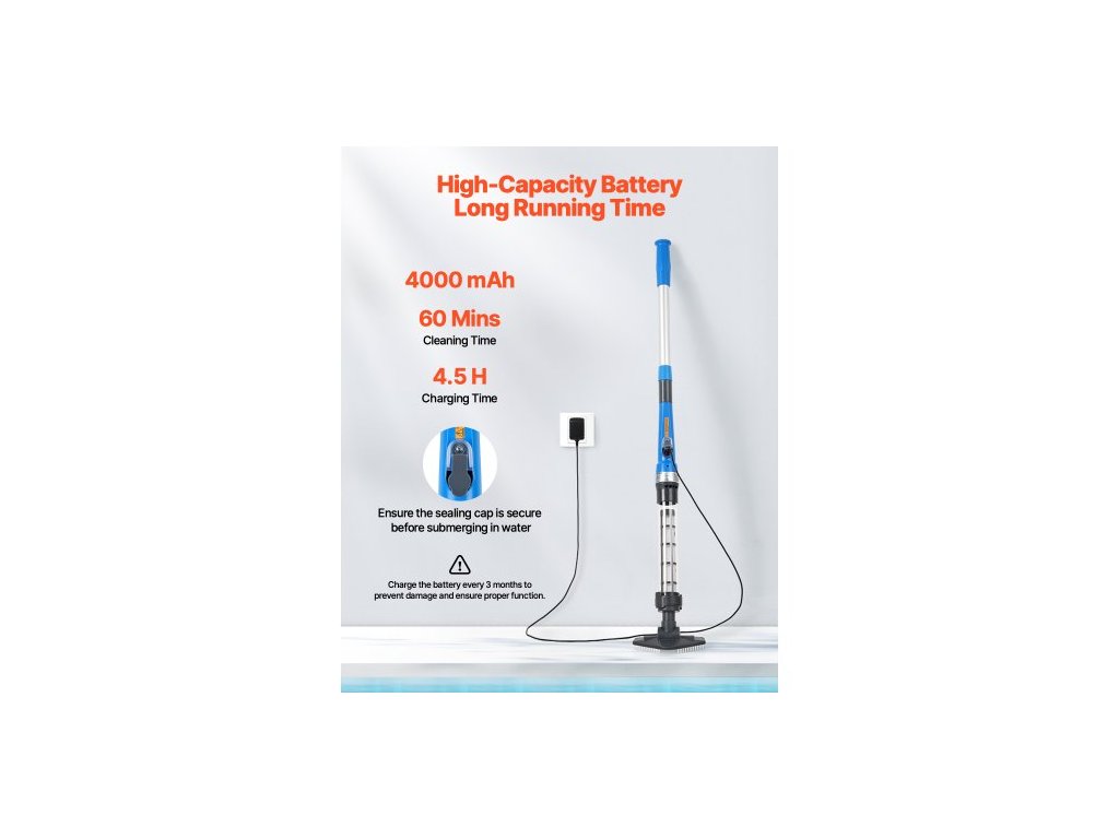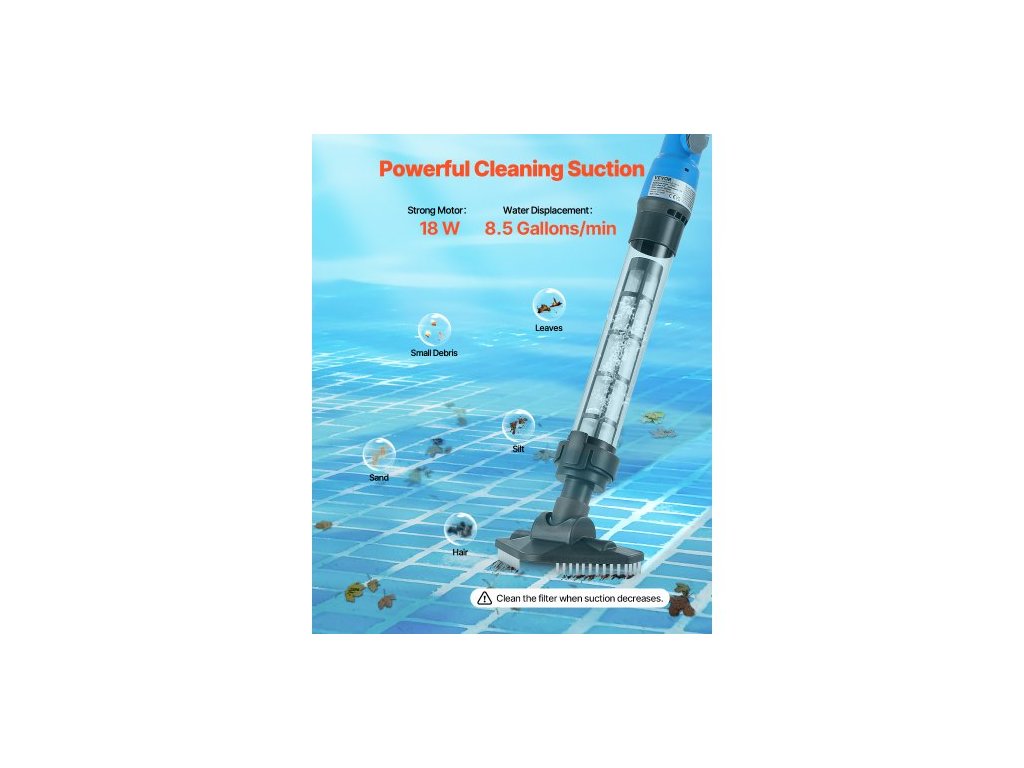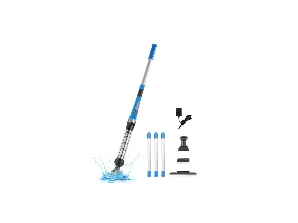 Bazénový vysavač , ruční bezdrátový vysavač do vířivky s výkonem 8,5 GPM a prodlužovací tyčí, pro hloubkové čištění a silné sání, dobíjecí bazénový čistič, provoz až 1 hodina, pro nadzemní/zapuštěné bazénové vířivkyBezdrátový bazénový vysavač