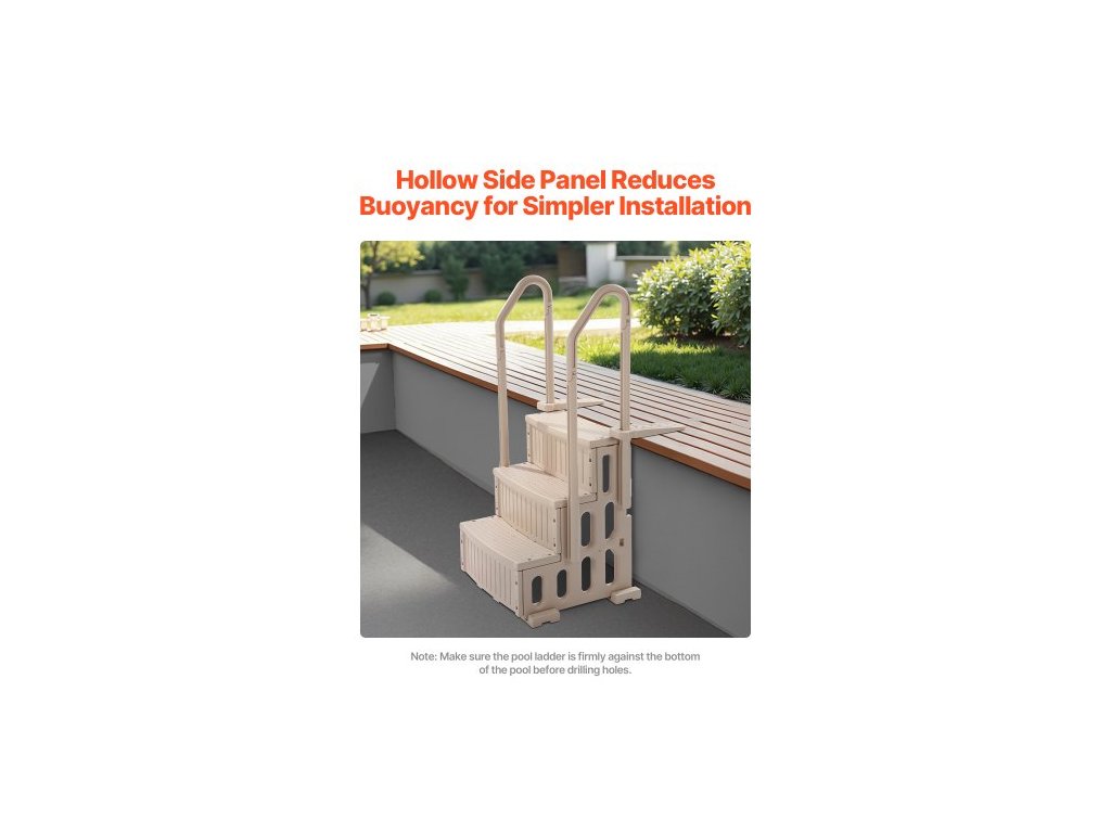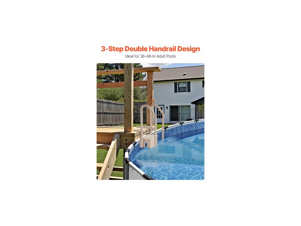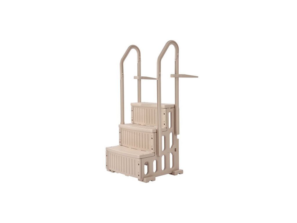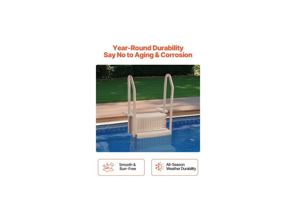 Bazénový žebřík , 3stupňový schod s dvojitým zábradlím a protiskluzovými odolnými stupni, maximální nosnost 400 liber, pro zapuštěné a nadzemní bazény o průměru 36-48 palců s jakýmkoli povrchem terasy, taupeUživatelsky přívětivá konstrukce