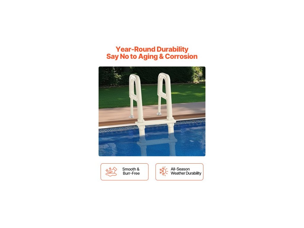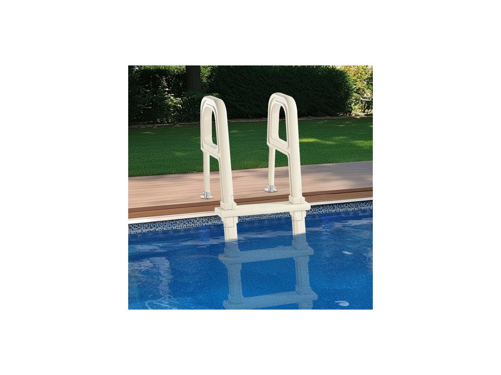 Bazénový žebřík , sklon 75°, 5stupňový, dvojité madlo, protiskluzové, odolné schody, nosnost 136 kg, pro zapuštěné a nadzemní bazény o průměru 122–147 cm s jakýmkoli povrchem terasy, vnitřní i venkovníUživatelsky přívětivá konstrukce