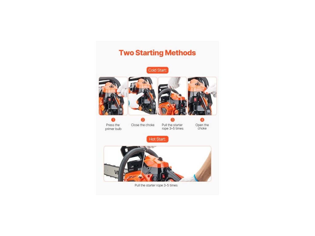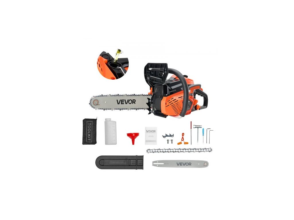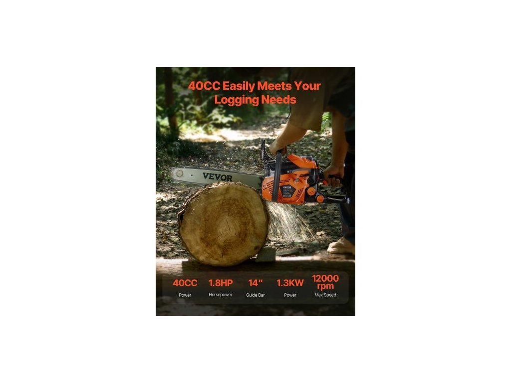 Benzínová řetězová pila 40 ccm, benzínová řetězová pila 14 palců, motorová pila 1,8 HP s protiskluzovou rukojetí, benzínové řetězové pily s dvojitou palivovou nádrží, pro řezání dřeva, prořezávání stromů a čištění pozemkůEfektivní těžba dřeva