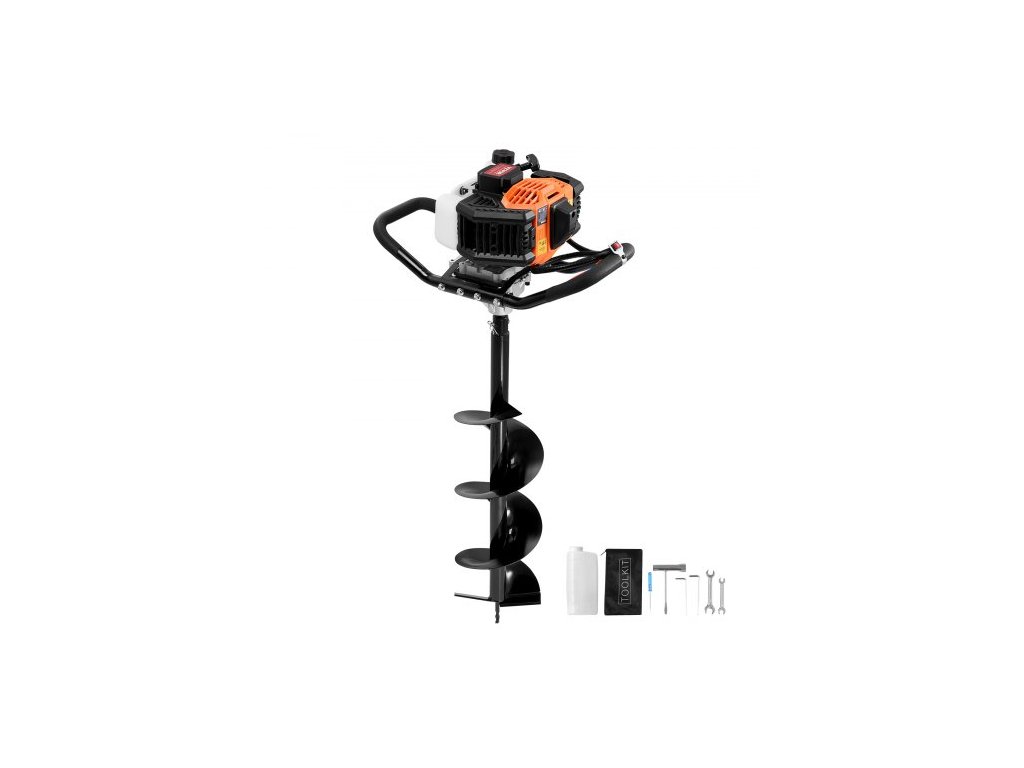 benzínový vrták na zemní vrty, 43CC 1250W, zemní vrták, benzínový vrták s 8” vrtacími bity, vrták na plotové otvory pro zemědělské zahradní rostliny, oranžová + černá