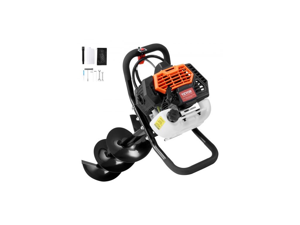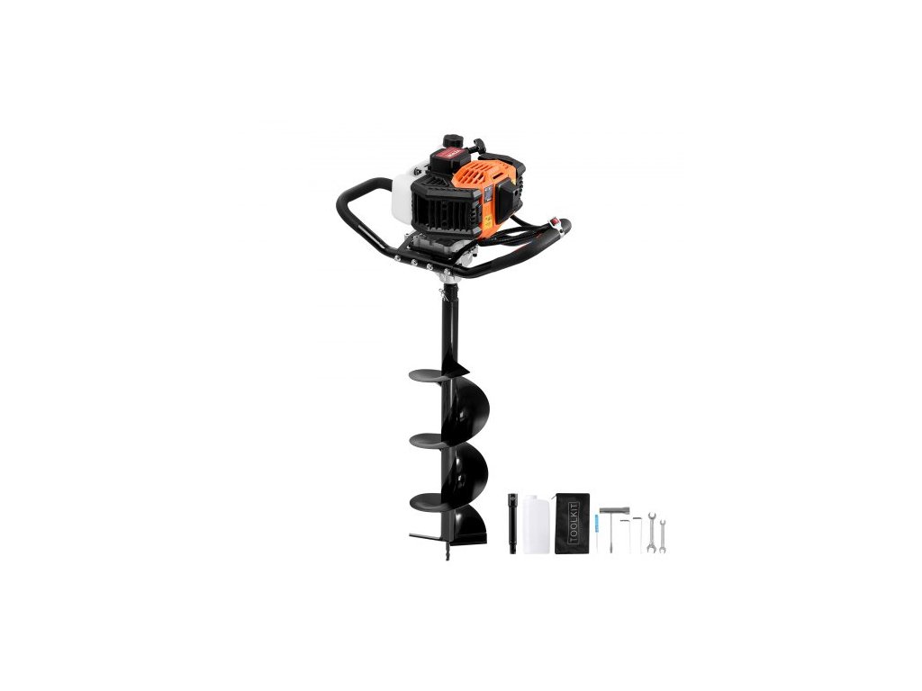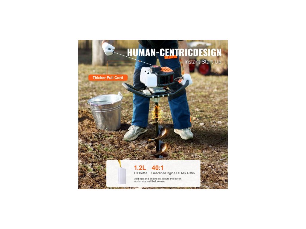 benzínový vrták na zemní vrty, 52CC 1450W, zemní vrták s 8” vrtacími bity a 1 prodlužovací tyčí, vrták na plotové otvory pro zemědělské zahradní rostliny, oranžová + černá