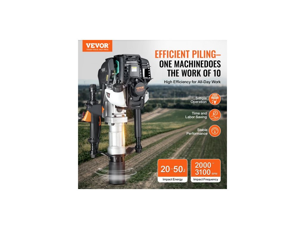 Benzínový zatloukač T-sloupků 37,77 ccm, čtyřtaktní benzínový motor, zatloukač plotů s 2 sloupky (55/70 mm), přenosný zatloukač 1000 W pro farmy, oplocení rančů a vylepšení silnic.