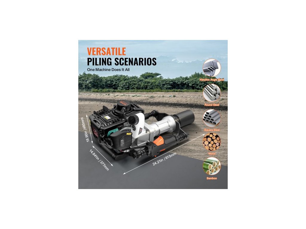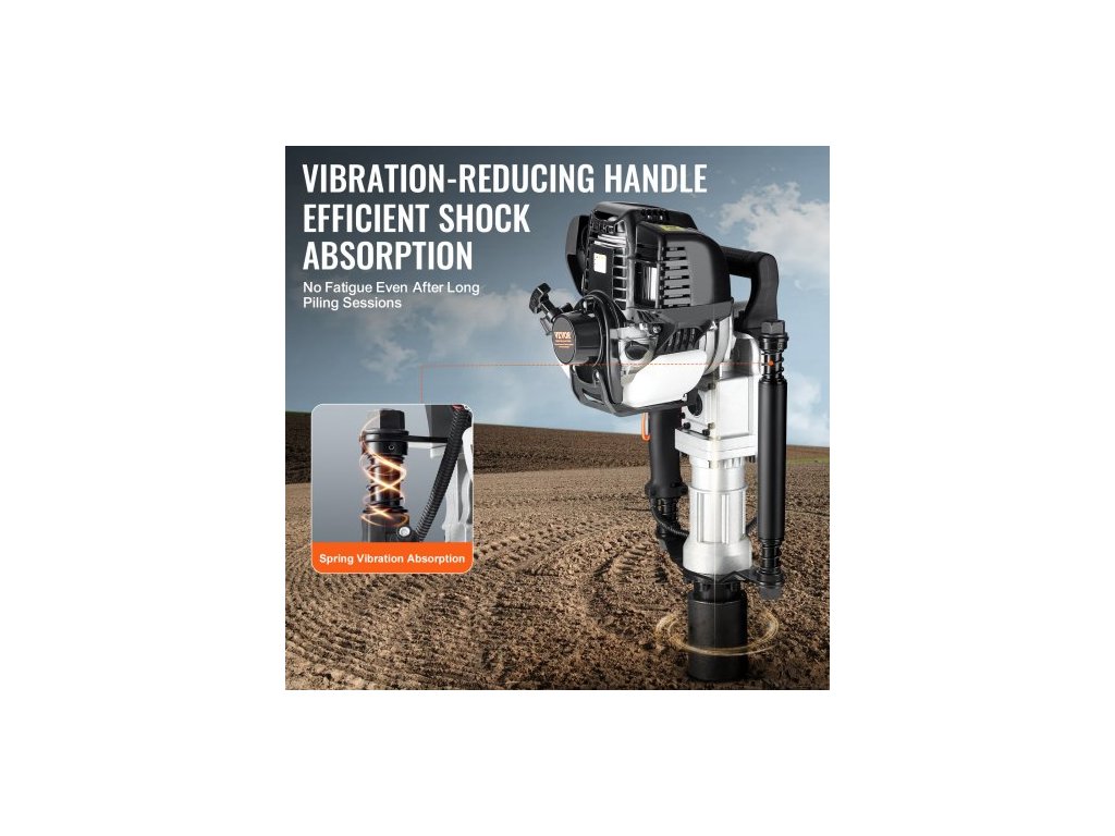 Benzínový zatloukač sloupků 37,77 ccm, čtyřtaktní benzínový zatloukač plotů, s 2 zatloukacími hlavami (55/70 mm), přenosný zatloukač 1000 W pro farmy, oplocení rančů a vylepšení silnicRychlé zatloukání pilot