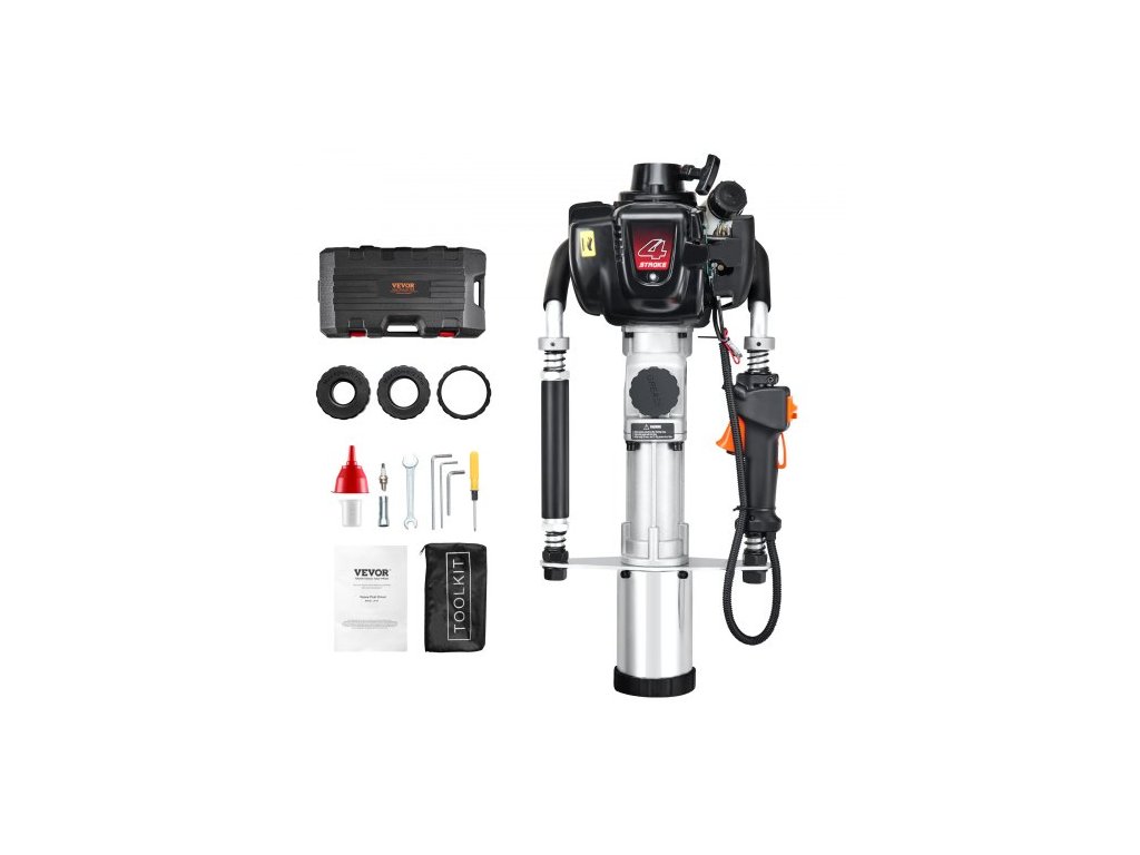 Benzínový zatloukač T-sloupků 37,77 ccm, čtyřtaktní benzínový zatloukač na ploty, s 3sloupkovou zatloukací hlavou (45/55/88 mm), přenosný zatloukač o výkonu 1000 W pro farmy, oplocení rančů a vylepšení silnicRychlé zatloukání pilot