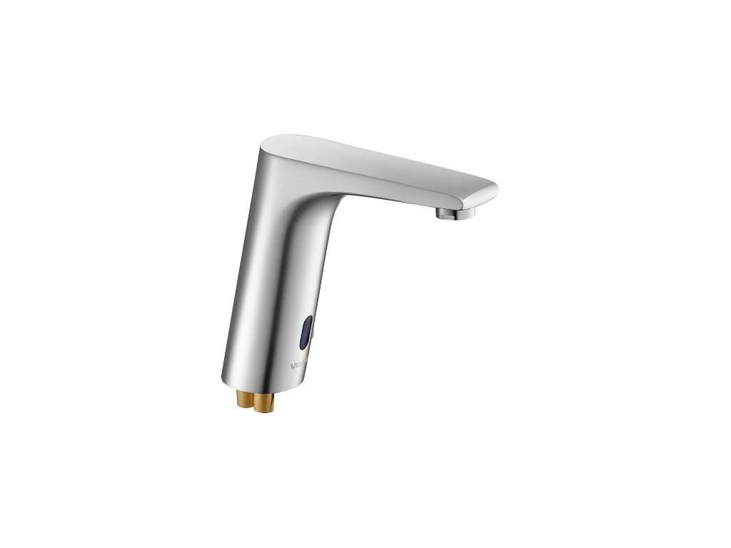 Bezdotyková umyvadlová baterie , automatická baterie s čidlem pohybu na toaletu, nastavitelná handsfree baterie pro studenou a teplou vodu s jednou rukojetí, napájená z baterie pro trubky o průměru 9,5 mm, kartáčovaný niklový stříbroBezdotykové ovládání